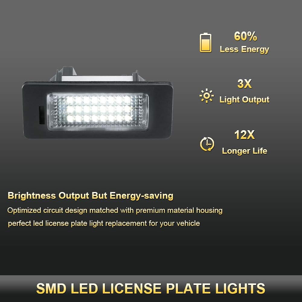 This kind of Error Free LED License Plate Lights will directly replace the original lamp. Specially designed for BMW license plate lights without on board computer error showing on dashboard.