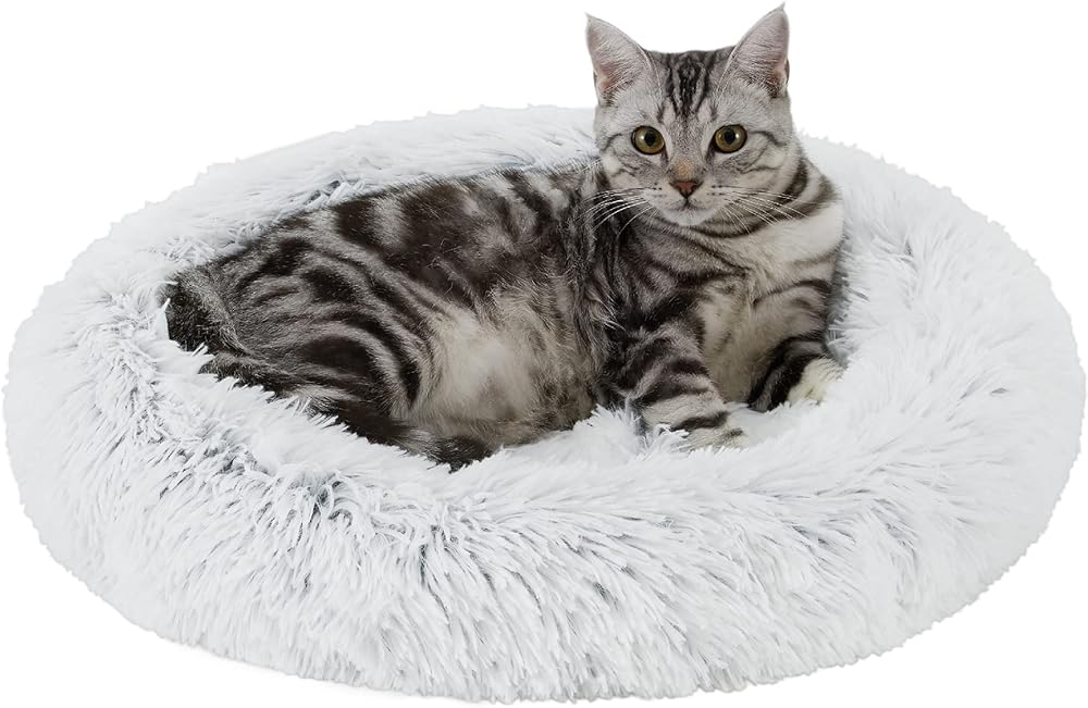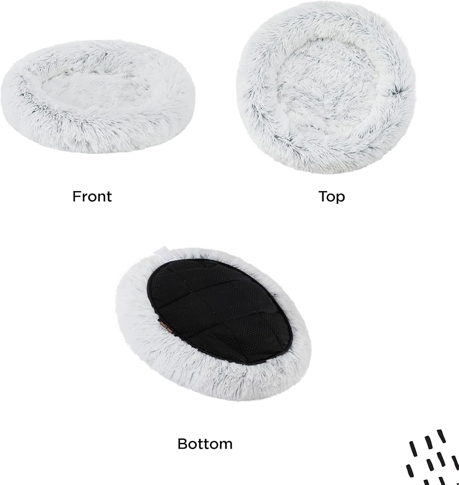 The Best Friends by Sheri calming cat bed simulates that feeling of comfort and security kittens get from their mother. These donut cat beds are designed with a 1/4" sleeping surface and deep crevices that envelope your pet in soft faux fur ideal for snuggling and burrowing. Perfect for pets that love to curl up, the raised rim provides head and neck support while the filling offers joint and muscle pain relief. The poly filling in our calming cat bed keeps its loft for up to 3Xs longer than standard pet beds, meaning it provides longer comfort, support, and aesthetic appeal. With a water and dirt-resistant bottom, our calming cat bed helps prevent messes from reaching your floors. When accidents happen, toss the bed into the washing machine for easy clean up. Follow the instructions on the label to ensure proper care.