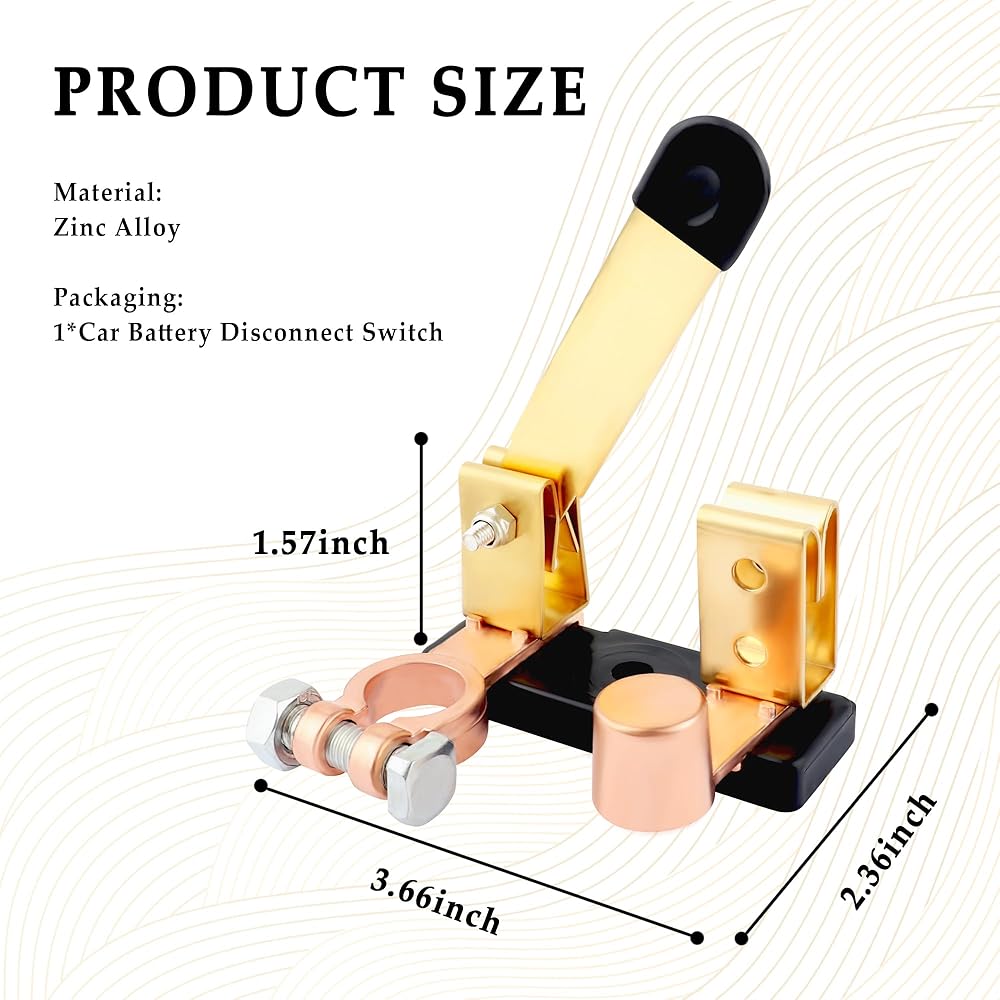 • ⚙️ Product Specifications: You will receive 1pcs of car battery disconnect switch with size 3.66*2.36*1.57 inch, suitable for 15-17mm negative installation. In simple terms, it is the disconnector, one pull will cut off the power, you can use it with confidence. Our battery disconnect is a practical and necessary car accessory!