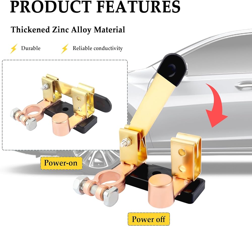 • ⚙️ Thickened Zinc Alloy Material: The battery shut off switch is made of thickened zinc alloy material, which is sturdy and durable with reliable conductivity. This blade-type switch can disconnect the battery in time when you are not using the car, and it will be fully charged when you start it again. It can reduce the consumption of the battery and prolong its service life.