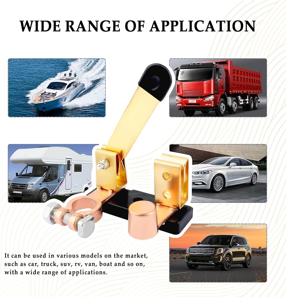 • ⚙️ Wide Range of Application: This battery switch disconnect is suitable for car batteries with operating voltage of 12-24V, rated current of 250A, instantaneous current of 750A, which can be used in various models on the market, such as car, truck, SUV, RV, van, boat and so on, with a wide range of applications. It brings you a lot of convenience for your daily driving!
