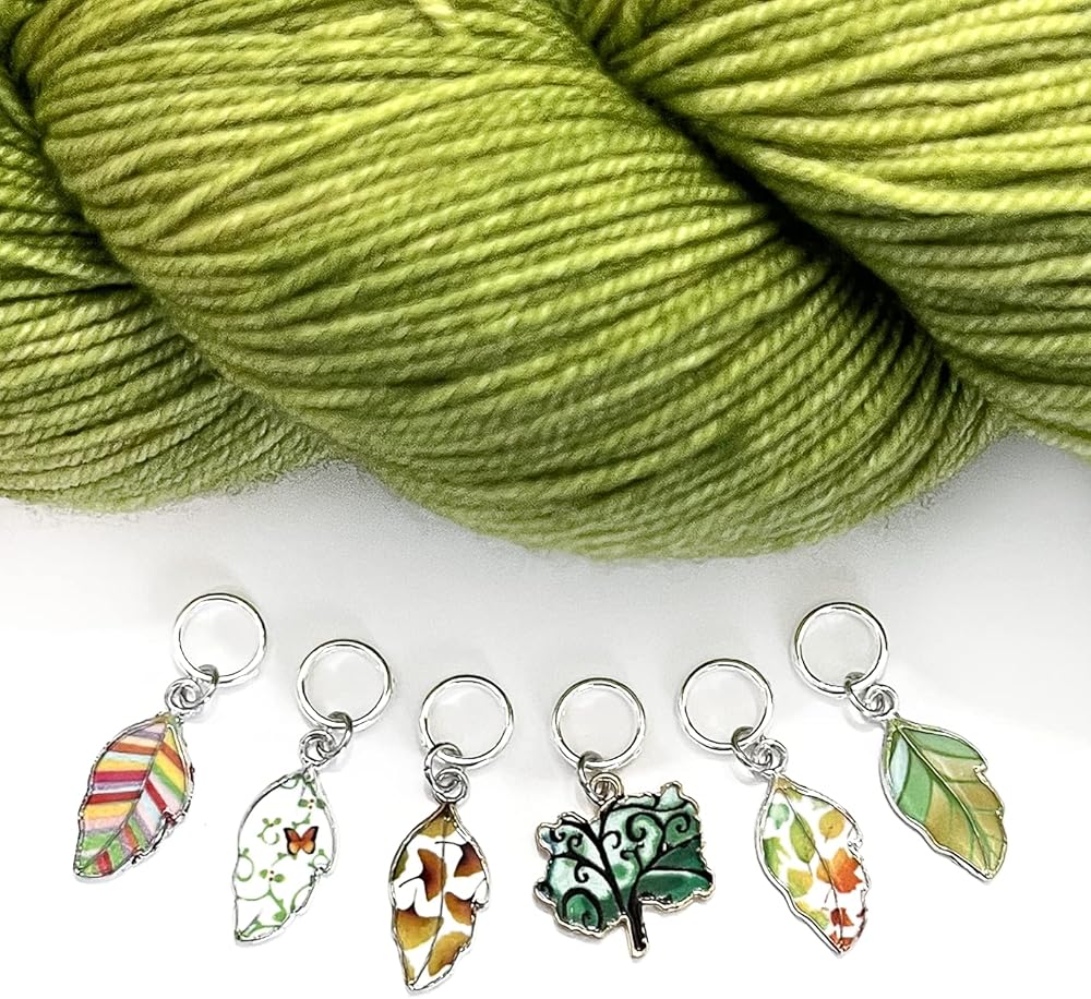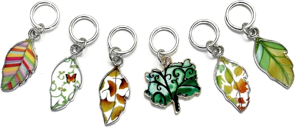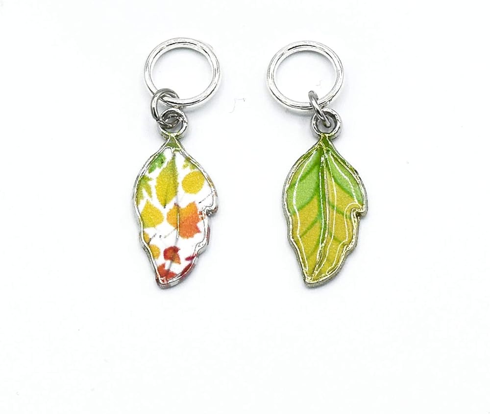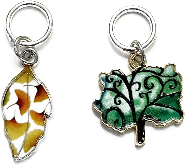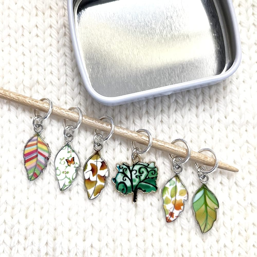 مجموعة أقلام تحديد الغرز الدائرية لأوراق الشجر الصيفية الجميلة للحياكة مع حقيبة تخزين | مصنوع يدويًا بواسطة تصميمات جميلة دافئة | لطيف فريد المعادن المينا سحر علامات غرزة مكافحة متماسكة الملحقات هدية عيد الميلاد