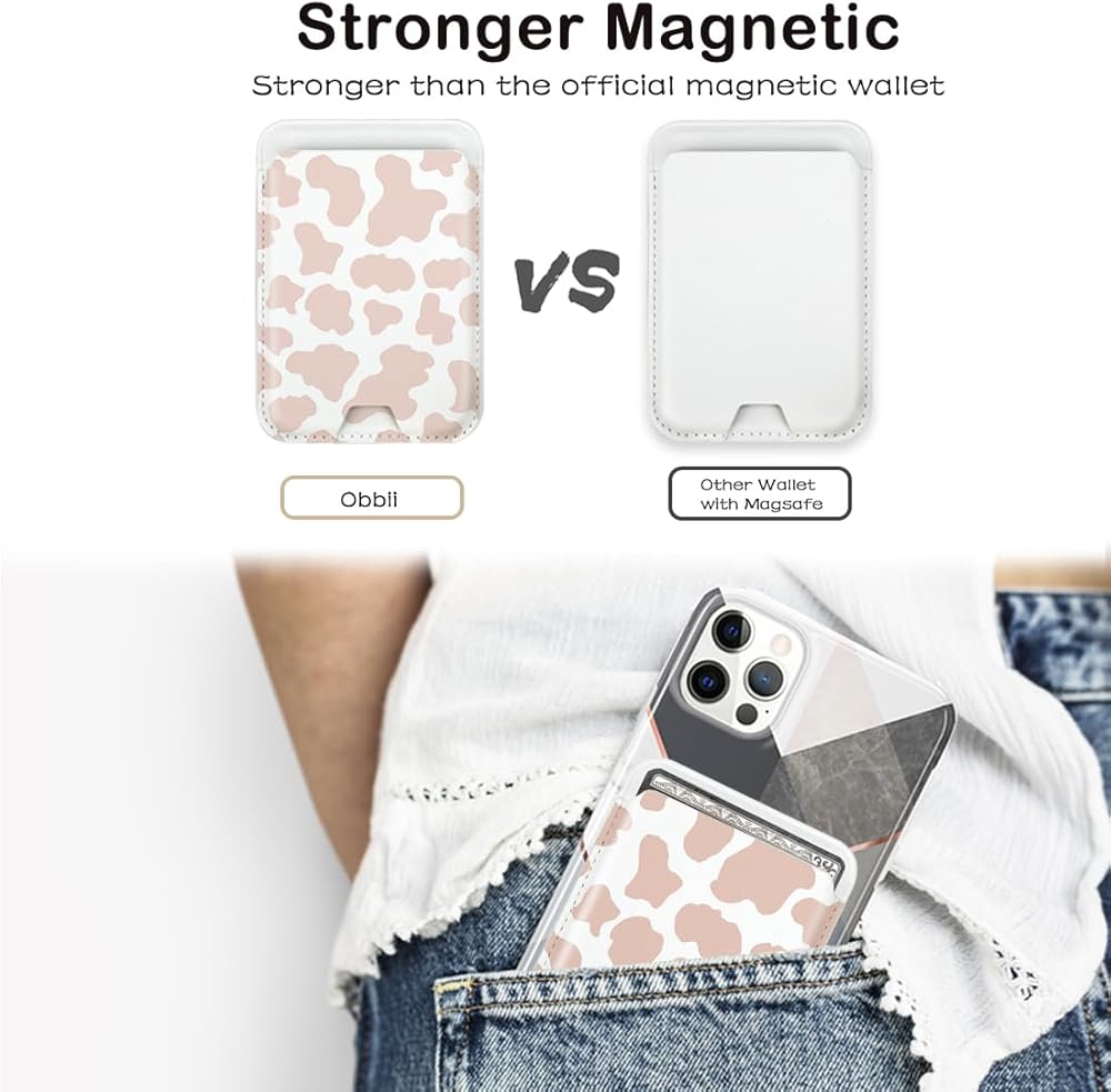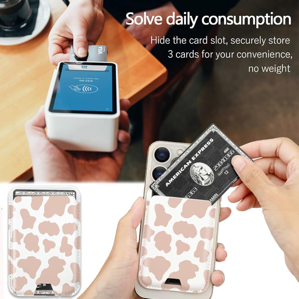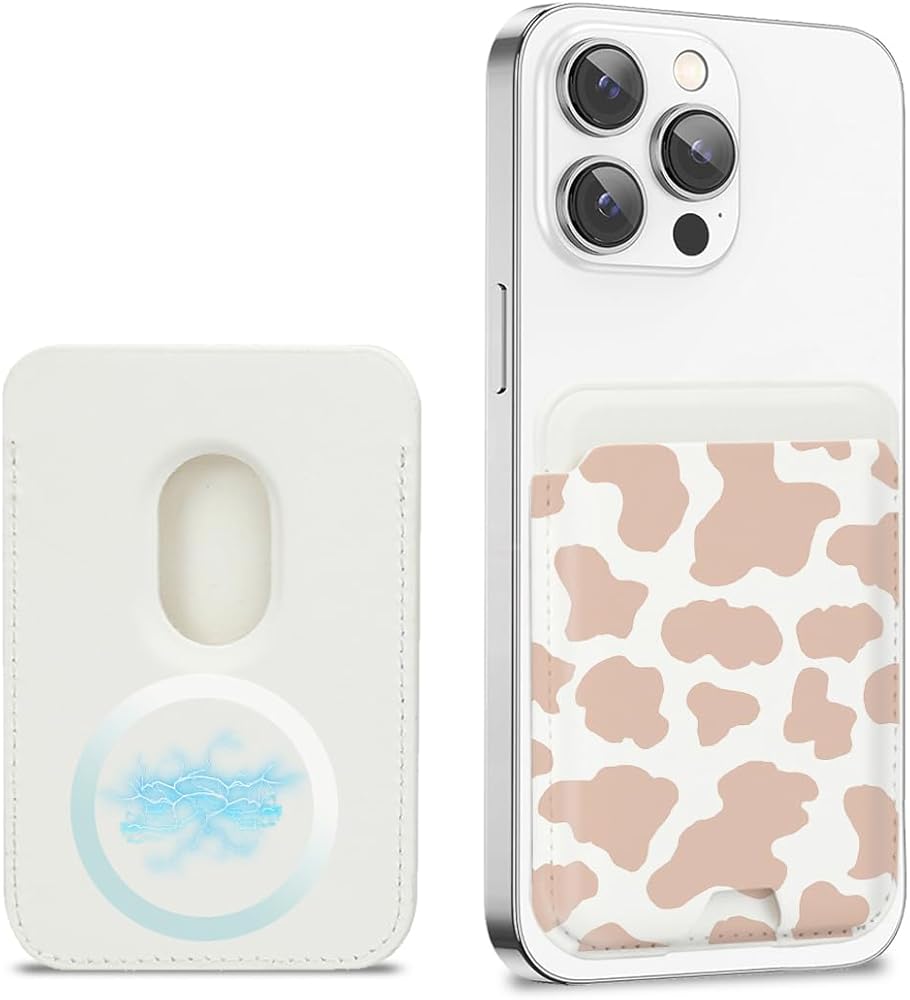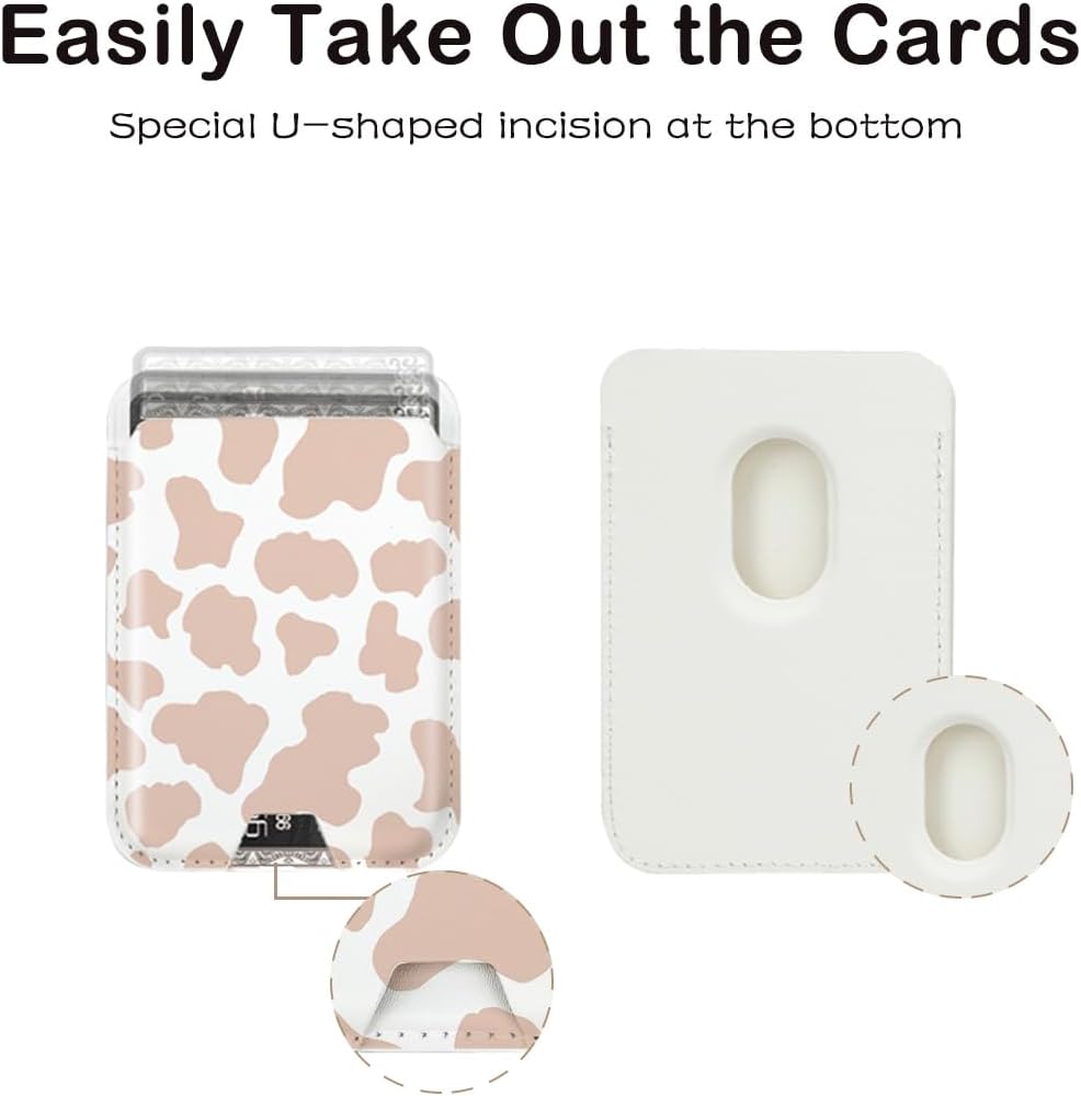 حامل بطاقة مغناطيسية لظهر محفظة الهاتف iPhone 15/14/13/12 Pro Max Mag Safe Case، محفظة جلدية مغناطيسية ملحقات الهاتف لسلسلة iPhone 15/14/13/12 (طباعة بقرة وردية)