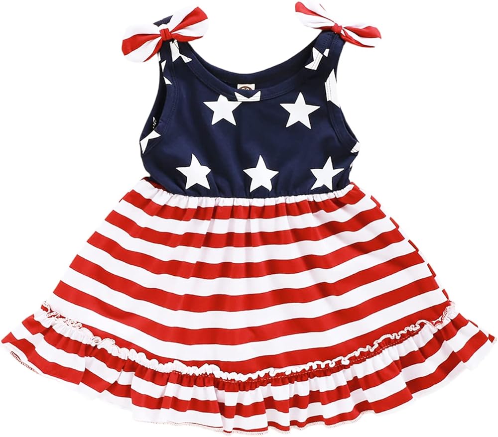 فستان صيفي بدون أكمام مقاس 6-12 شهرًا 12-18 شهرًا 18-24 شهرًا 2-3T 3-4T. رائع للارتداء في يوم الاستقلال الأمريكي في الرابع من يوليو وللارتداء اليومي.