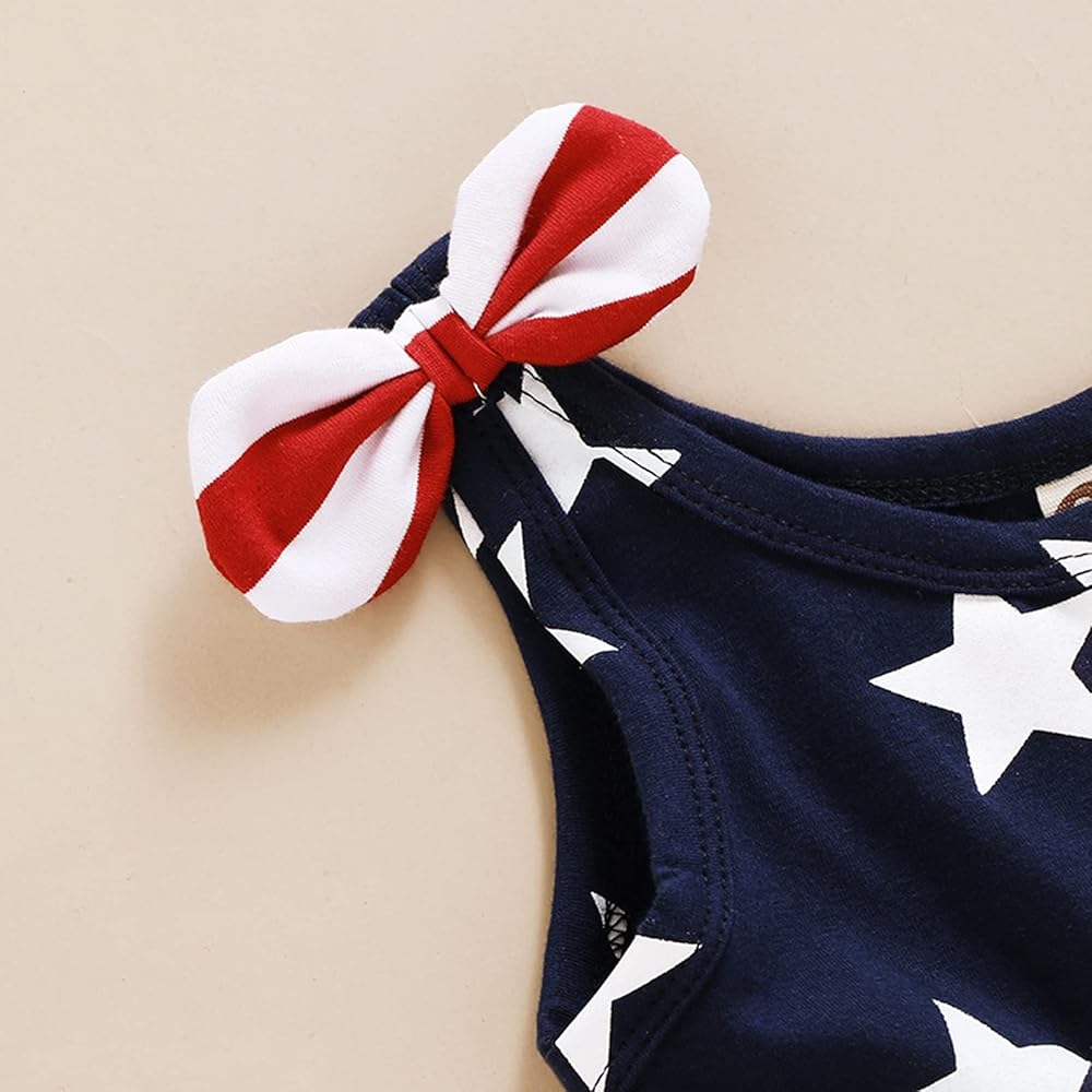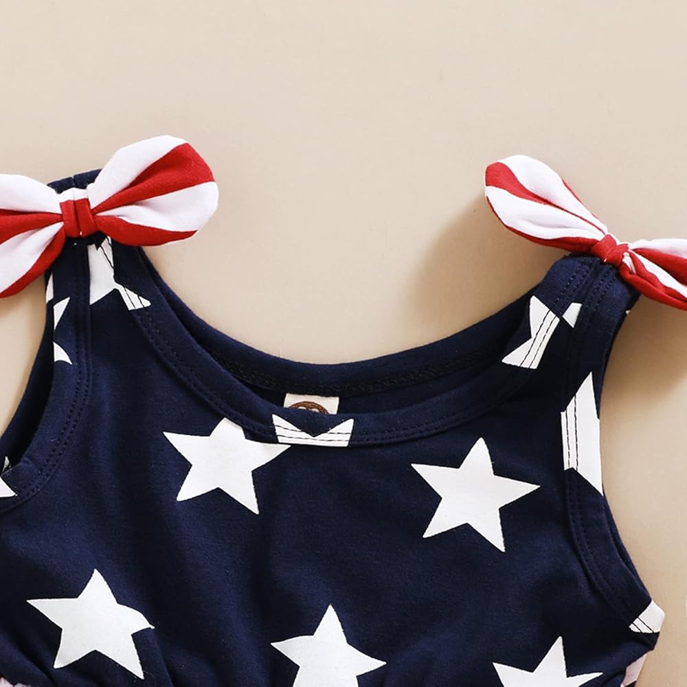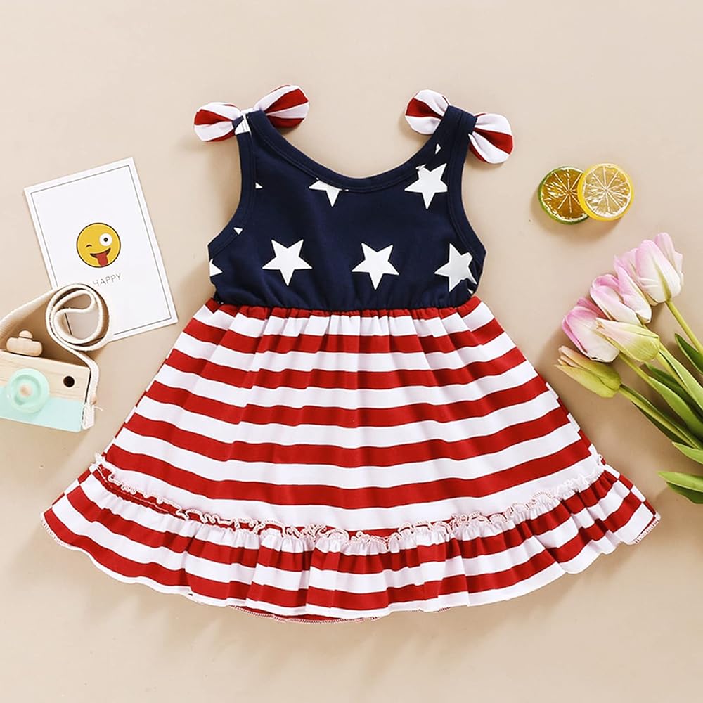 4 يوليو عيد الاستقلال ملابس الأطفال مقاس الفستان لمدة 6-12 شهرًا، 12-18 شهرًا، 18-24 شهرًا، 2-3 سنوات، 3-4 سنوات، فستان بدون أكمام. التصميم: نمط العلم الأمريكي، طباعة نجمة مخططة باللونين الأحمر والأبيض والأزرق. اجعل فتاتك تبدو لطيفة جدًا.