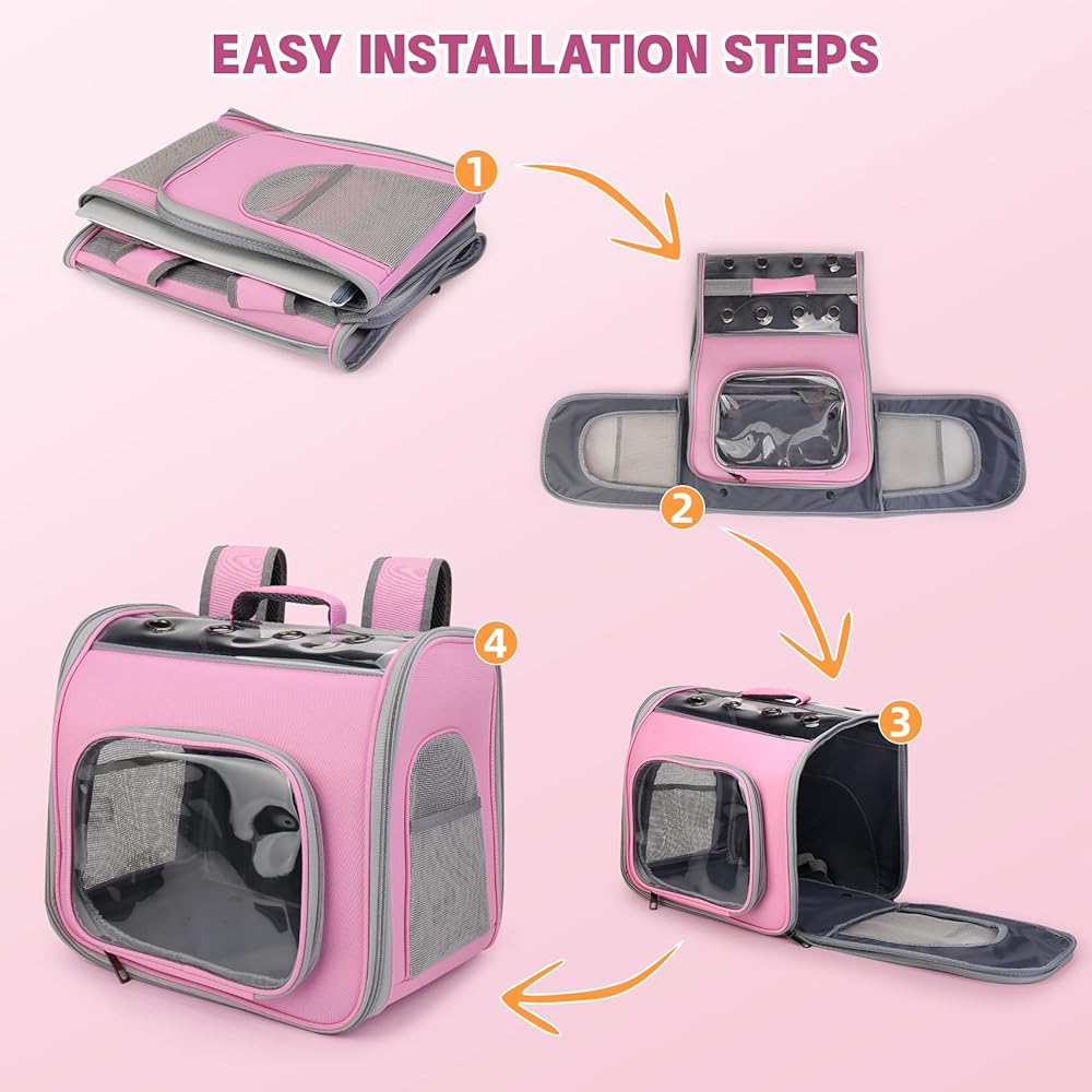 حقيبة ظهر لحمل الحيوانات الأليفة، حقيبة ظهر للقطط مزودة بفتحات قابلة للتنفس، حاملة سفر محمولة للحيوانات الأليفة للقطط والكلاب المتوسطة والصغيرة، معتمدة من شركات الطيران، مثالية للنزهات الخارجية والمشي لمسافات طويلة (وردي)
