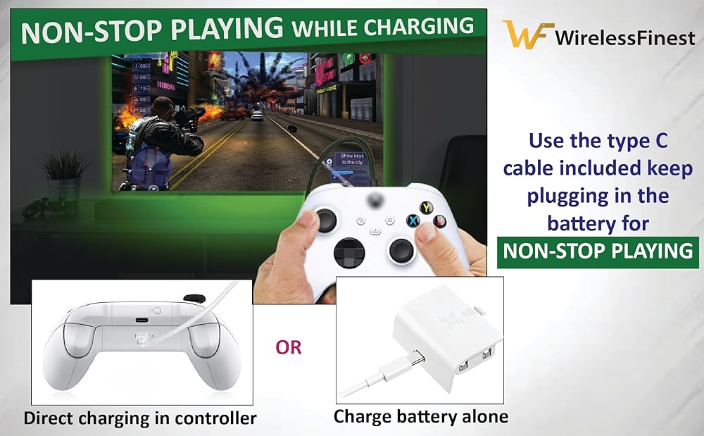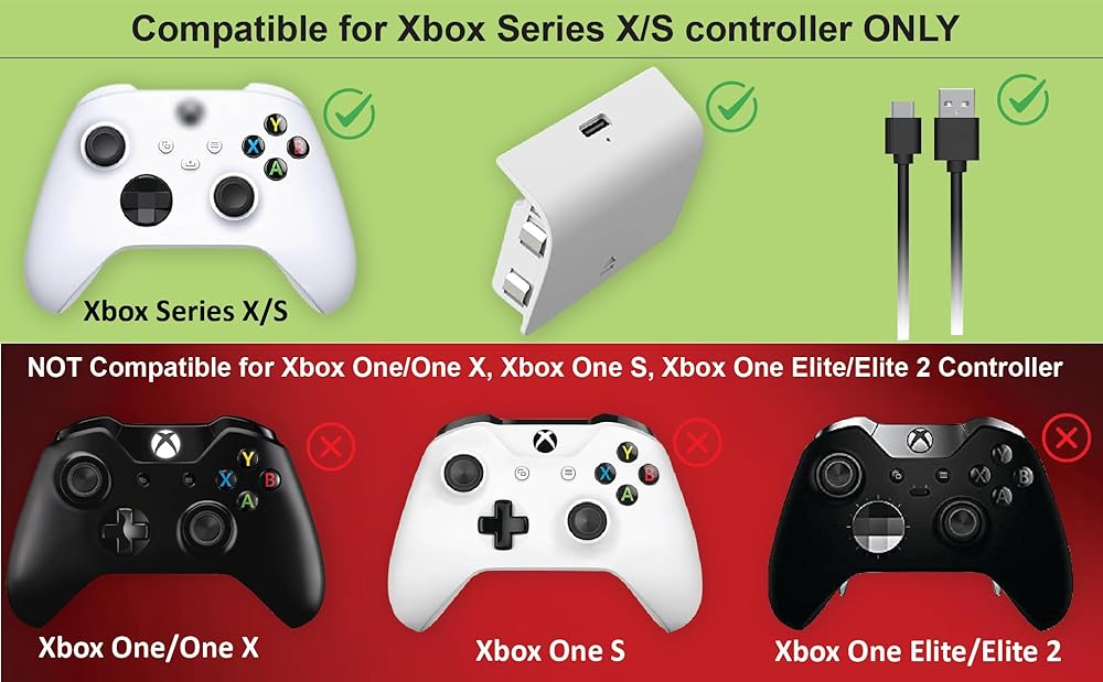 مصمم رسميًا خصيصًا لوحدة تحكم Xbox Series X وXbox Series S فقط. حزمة بطارية قابلة لإعادة الشحن + غطاء مدمج + كابل شحن USB C، يوفر كابل الشاحن ومجموعة البطارية سعة عالية وحل شحن سريع بدون توقف (لا يدعم سلسلة XBOX ONE مع قابس USB صغير).
