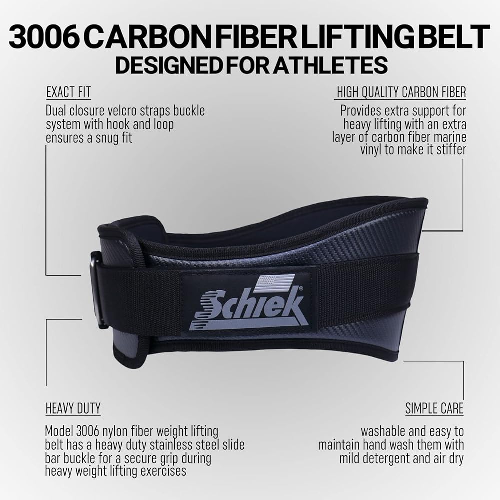 تصميم فريد - حزام رفع ألياف الكربون موديل 3006 مقاس 6 بوصات من Schiek هو حزام رفع أثقال عالي الجودة مع طبقة إضافية من الفينيل البحري من ألياف الكربون لجعله أكثر صلابة لمزيد من الدعم.