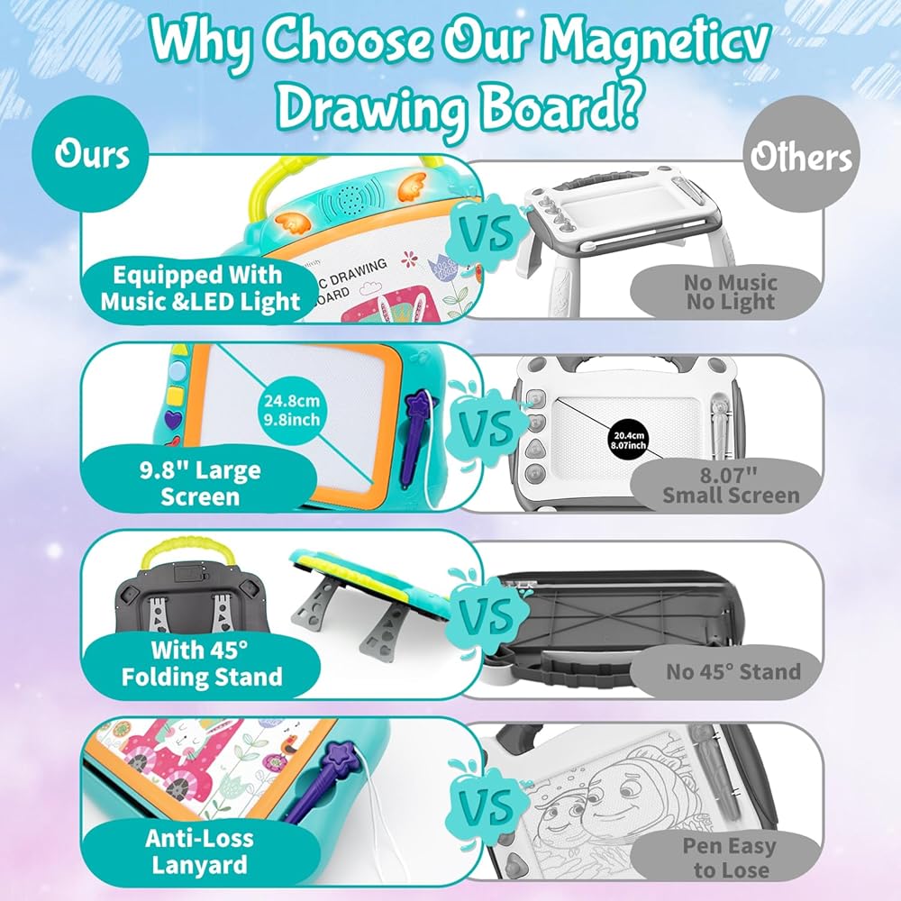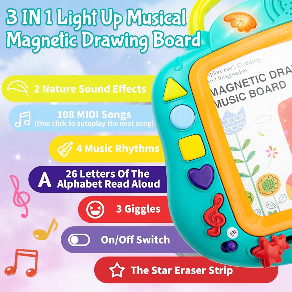• 🎵【هدية للأطفال الصغار】هل تبحث عن هدية فريدة وعملية للأطفال الصغار؟ لا مزيد من البحث! لن تقوم لوحة الرسم المغناطيسية هذه بتسلية الأطفال فحسب، بل ستساهم أيضًا في تطورهم الإدراكي والإبداعي. إنها هدية مثالية لعيد الحب، أو عيد الميلاد، أو أعياد الميلاد، أو العطلات، أو أي مناسبة خاصة.