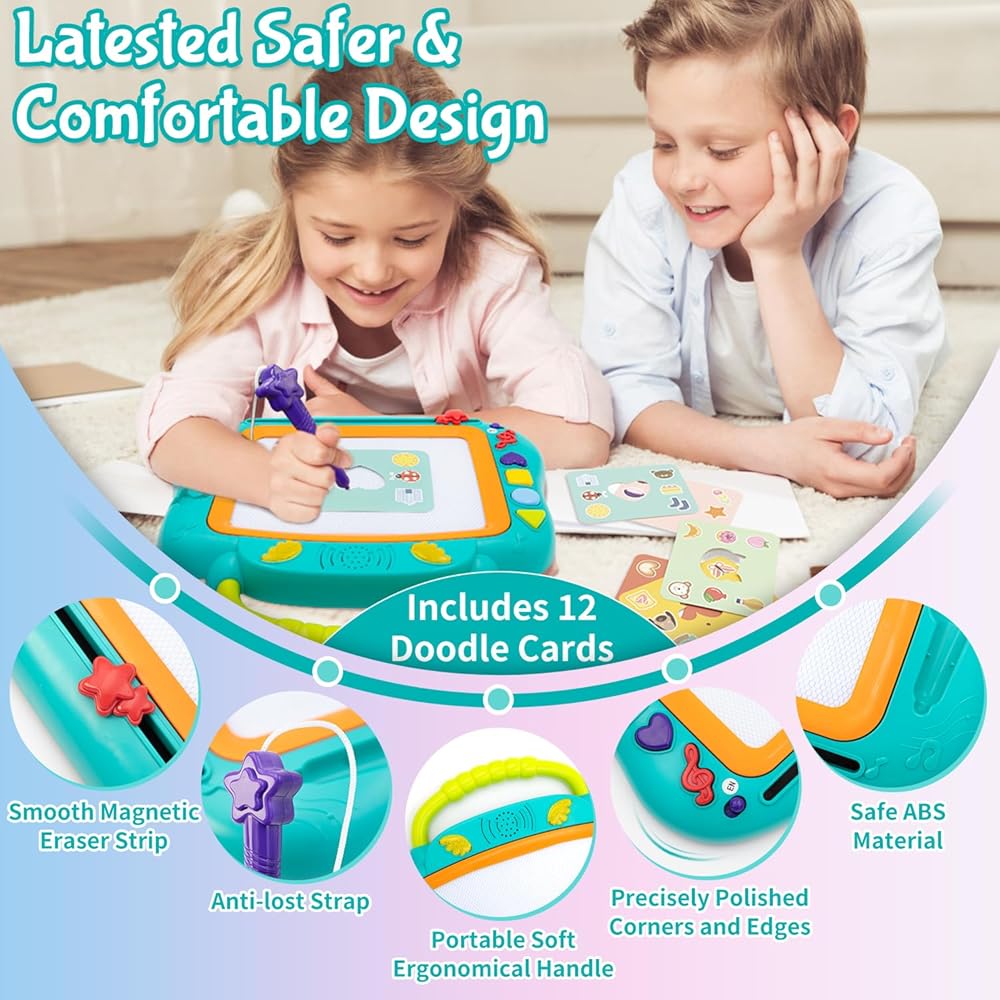 • 🎵【12 بطاقة دودل】تأتي لوحة الرسم المغناطيسية الخاصة بنا مع 12 بطاقة دودل مصممة خصيصًا. مثل الحيوانات والفواكه والمركبات والهندسة ولعبة وأكثر من ذلك. تتميز هذه البطاقات بصور متنوعة يمكن للأطفال نسخها عن طريق التتبع أو استخدام خيالهم لإنشاء روائعهم الفريدة.