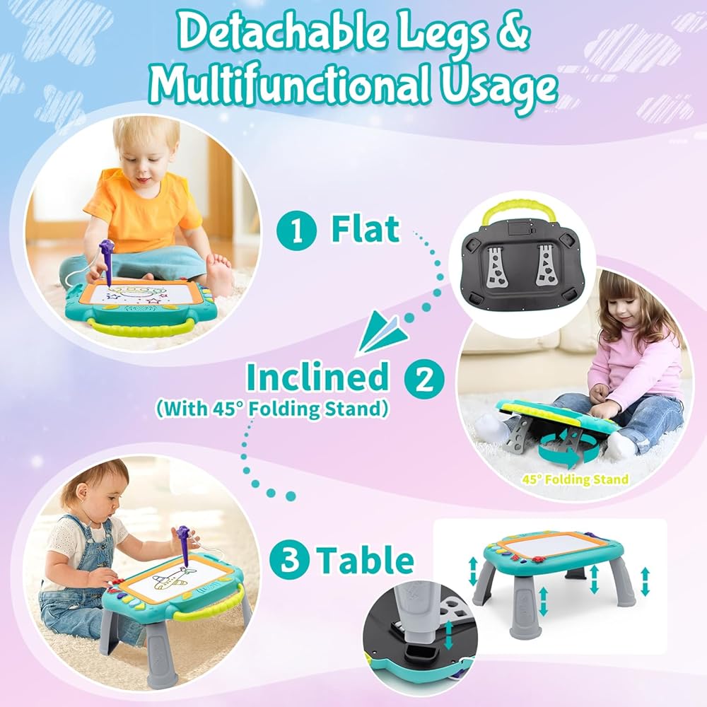 • 🎵【خيارات وضع متعددة الاستخدامات】 تتميز لوحة الرسم المبتكرة هذه بأربعة أرجل قابلة للفصل، مما يسمح لك بوضعها مباشرة على الأرض للحصول على تجربة رسم مريحة ومستقرة. بالإضافة إلى ذلك، يوجد حامل مائل بزاوية 45 درجة في الجزء الخلفي من اللوحة، مما يسمح لك بوضعه على طاولة أو أي سطح مستوٍ للرسم المريح.