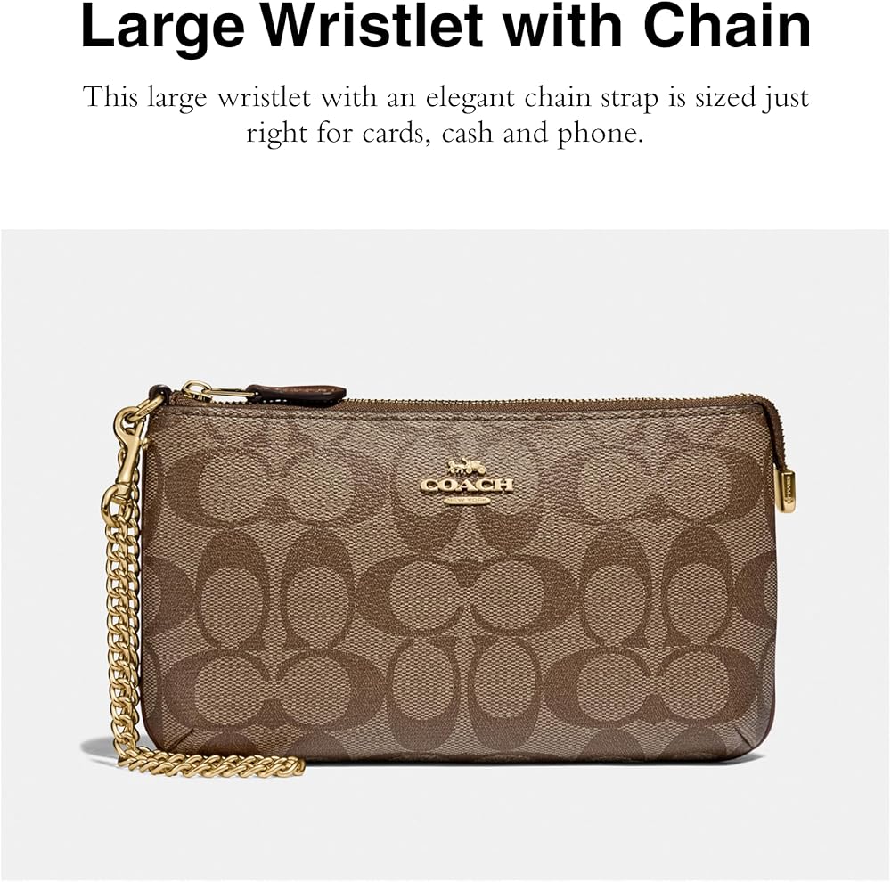 • Editors Notes: This signature canvas large wristlet with an elegant chain strap is sized just right for cards, cash and phone