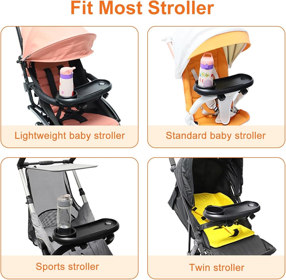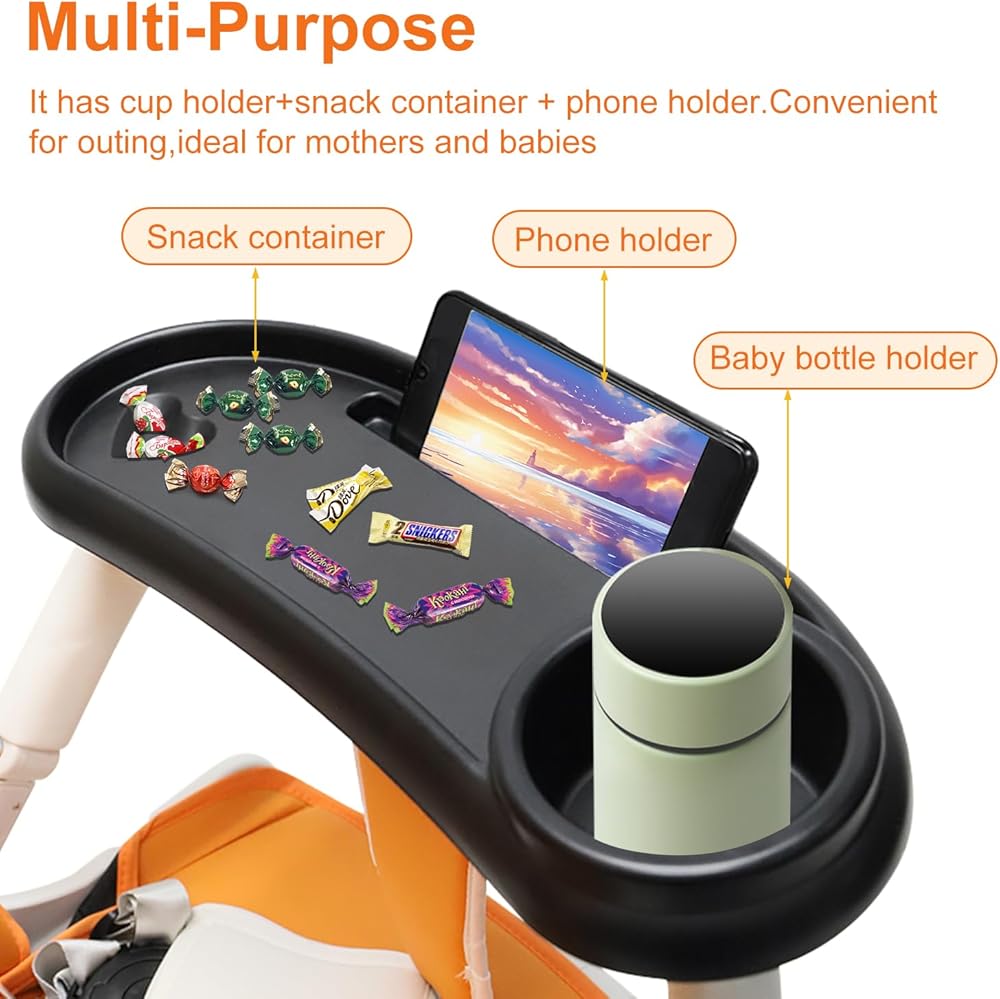 【Easy to install and Clean】:Lightweight and simple to install, you can get it ready without any tools. This is an ideal accessory for strollers.It's made of durable washable high-quality food grade ABS material and made of safe and environmentally friendly materials. so it's easy to clean up your child's messes.