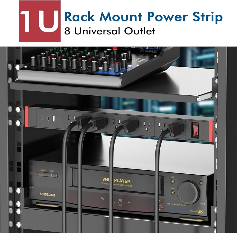 • شريط الطاقة المثبت على الحائط - يأتي شريط الطاقة القابل للتركيب هذا مزودًا بمسامير تثبيت، مما يسمح بتثبيت شريط الطاقة المثبت على الحائط بشكل آمن على مقاعد العمل أو المرآب أو بجانب السرير أو خلف التلفزيون أو تحت العدادات/المكاتب/الخزائن أو خزانات الملابس. قم بتوصيله بسلك تمديد بطول 6 أقدام و16AWG، غير متوافق مع معدات الرف