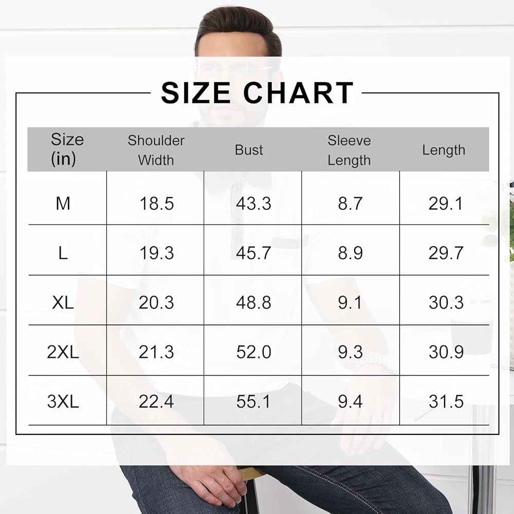 التصميم: قميص بولو رجالي بأكمام قصيرة لممارسة الرياضة والترفيه؛ الربط طوق المتناقضة وفتحة؛ يوجد جيب على الصدر. أزرار قابلة للتعديل تضمن أقصى قدر من الراحة للرقبة؛ قمصان بولو جولف رفيعة، تجعل الأشخاص أكبر وأطول.