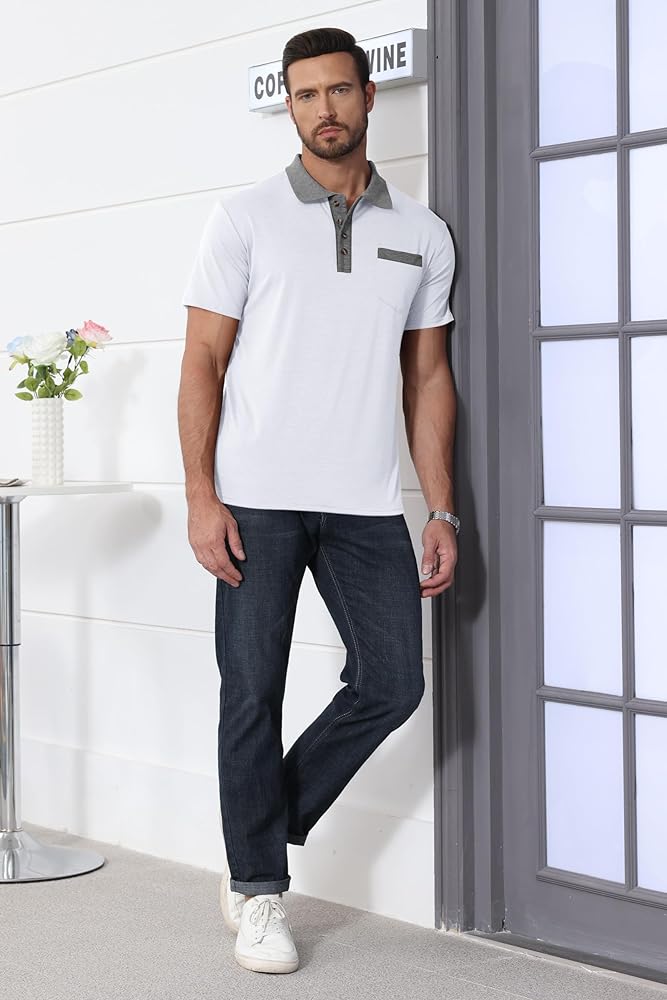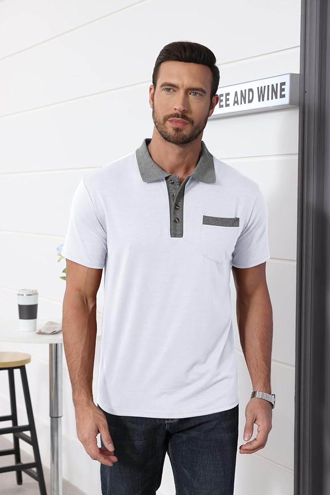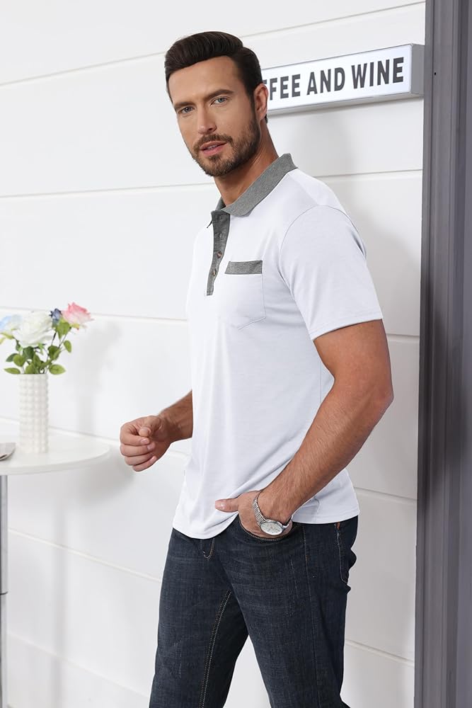 نسيج مطاطي: تتميز قمصان البولو الرياضية هذه للرجال بأداء رياضي وتمدد واسع يسمح بنطاق كامل من الحركة في أي اتجاه.