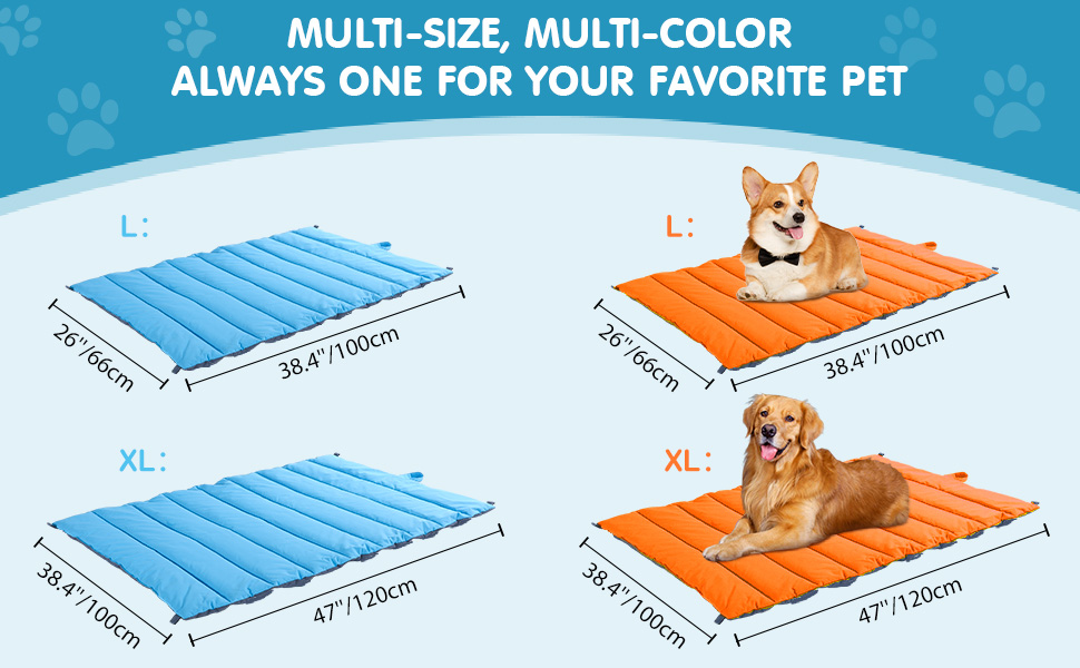 【قابل للطي والحمل】 يمكن فرد سرير الكلب الخارجي أو طيه بسهولة، ويمكن طيه في حقيبة الحمل المرفقة، مما يوفر مساحة كبيرة، وسهل التخزين، ومريح للحمل للتخييم في الهواء الطلق، والسفر، والنزهات وغيرها من الأنشطة الخارجية. استمتع بوقتك مع حيواناتك الأليفة المحبوبة.