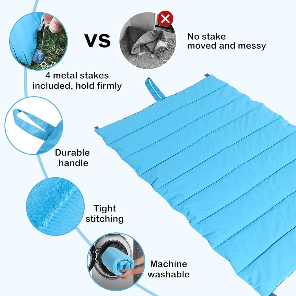 【الاستخدام الداخلي والخارجي】 مجهزة بـ 4 قضبان معدنية، يمكن تثبيتها بإحكام على التربة أو العشب، ويمكن استخدام سجادة الكلاب المحمولة كسرير للكلاب في الهواء الطلق، أو سرير للكلاب للتخييم، أو سرير نوم للكلاب، أو سجادة للكلاب أثناء السفر. بالإضافة إلى ذلك، يمكن استخدامها أيضًا في الداخل، وهي مناسبة للاستخدام كحصيرة لقفص الكلاب وحصيرة بيت الكلب. مناسبة للكلاب المتوسطة والكبيرة. سوف تتسخ الحيوانات الأليفة فرائها إذا استلقت مباشرة على الأرض، استخدم سجادات الحيوانات الأليفة لدينا لمنح صديقك المكسو بالفراء مساحة نظيفة خاصة به للراحة.