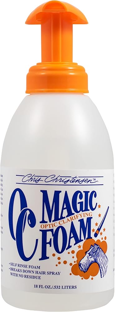 شامبو كريس كريستنسن أو سي ماجيك فوم للشطف الذاتي للكلاب، يزيل رذاذ الشعر، والطباشير، والمنتجات الثقيلة، للكلاب ذات المعطف السلكي والكلاب الرقيقة المطلية الناعمة، العريس مثل المحترفين، 18 أونصة