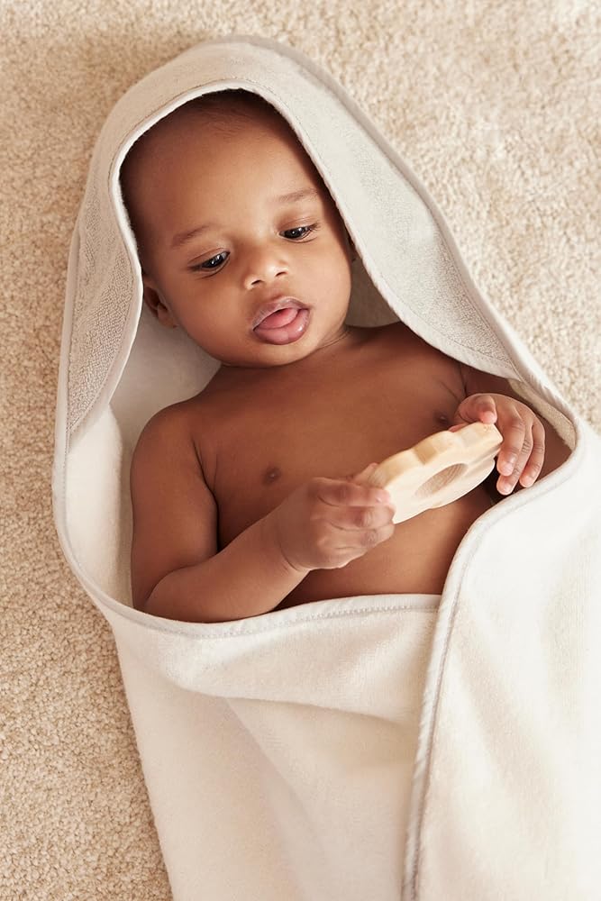 السلامة أمر بالغ الأهمية: مع وضع رفاهية طفلك في الاعتبار، فإن منشفة الحمام ذات القلنسوة هذه، مصنوعة من القطن العضوي الدقيق النقي، وهي خالية من المواد الكيميائية الضارة، مما يجعلها مثالية لبشرة طفلك الحساسة.