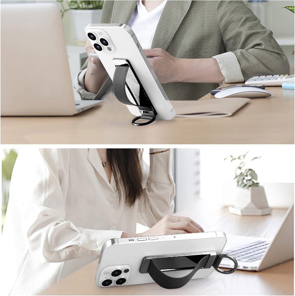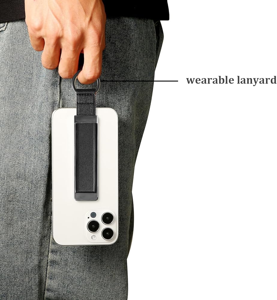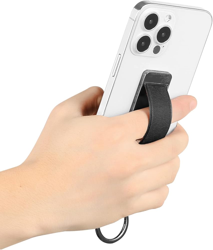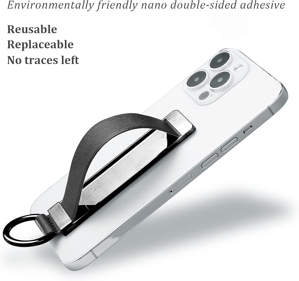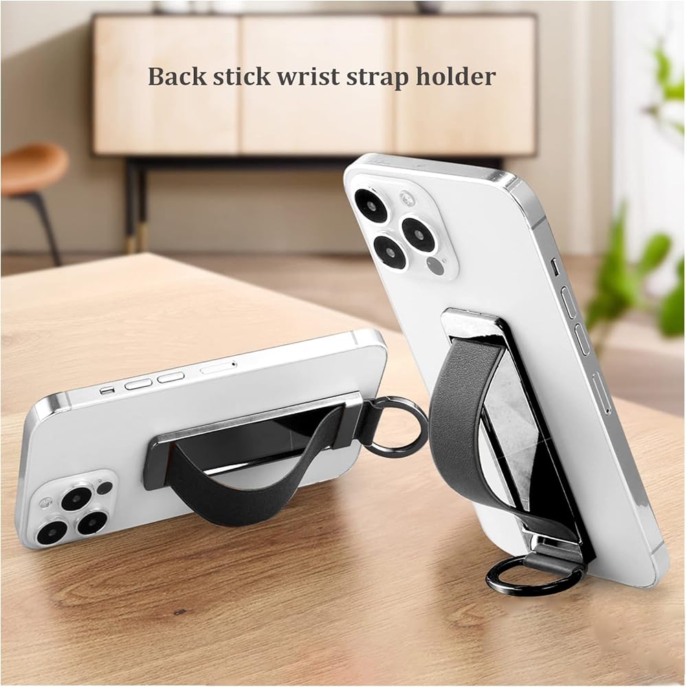 This is a wrist strap cell phone holder with a push-pull design for the grip, compact and ultra-thin.
