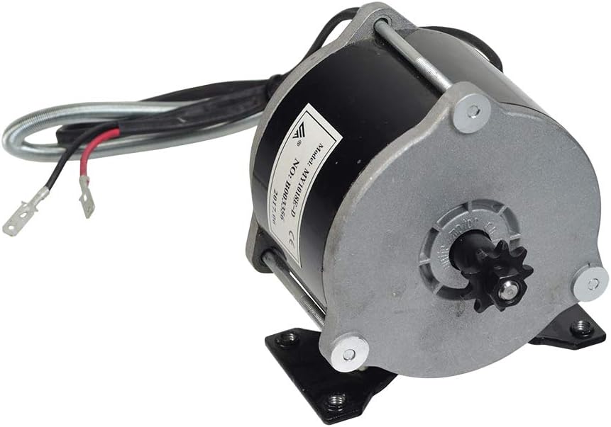 Enhance the performance of your Razor Crazy Cart XL with the AlveyTech Heavy Duty 36 Volt 500 Watt MY1018E-D Electric Motor, designed for durability, power, and easy installation. Crafted with durability in mind, this electric motor ensures long-lasting performance, providing reliable power and torque for your Razor Crazy Cart XL (Versions 1+) during rides. Equipped with a 9-tooth sprocket, it delivers optimal power transmission, ensuring smooth and efficient operation, allowing your Razor Crazy Cart XL to accelerate and maneuver with ease. The motor comes with a mounting bracket and hardware included, featuring two mounting holes on each front and rear face for easy installation onto your Razor Crazy Cart XL, eliminating the need for additional components or complex setups. Specifically designed for compatibility with the Razor Crazy Cart XL (Versions 1+), this electric motor offers a perfect fit and seamless integration, ensuring optimal performance and functionality for your electric ride-on vehicle. With its heavy-duty construction and powerful 36-volt, 500-watt output, this electric motor provides robust performance, allowing you to enjoy thrilling rides and exciting drifting adventures. Specifications: Model: MY1018E-D Sprocket: 9 tooth Output: 500 watts Weight: 5.85 lbs. Wire Length: 100 cm