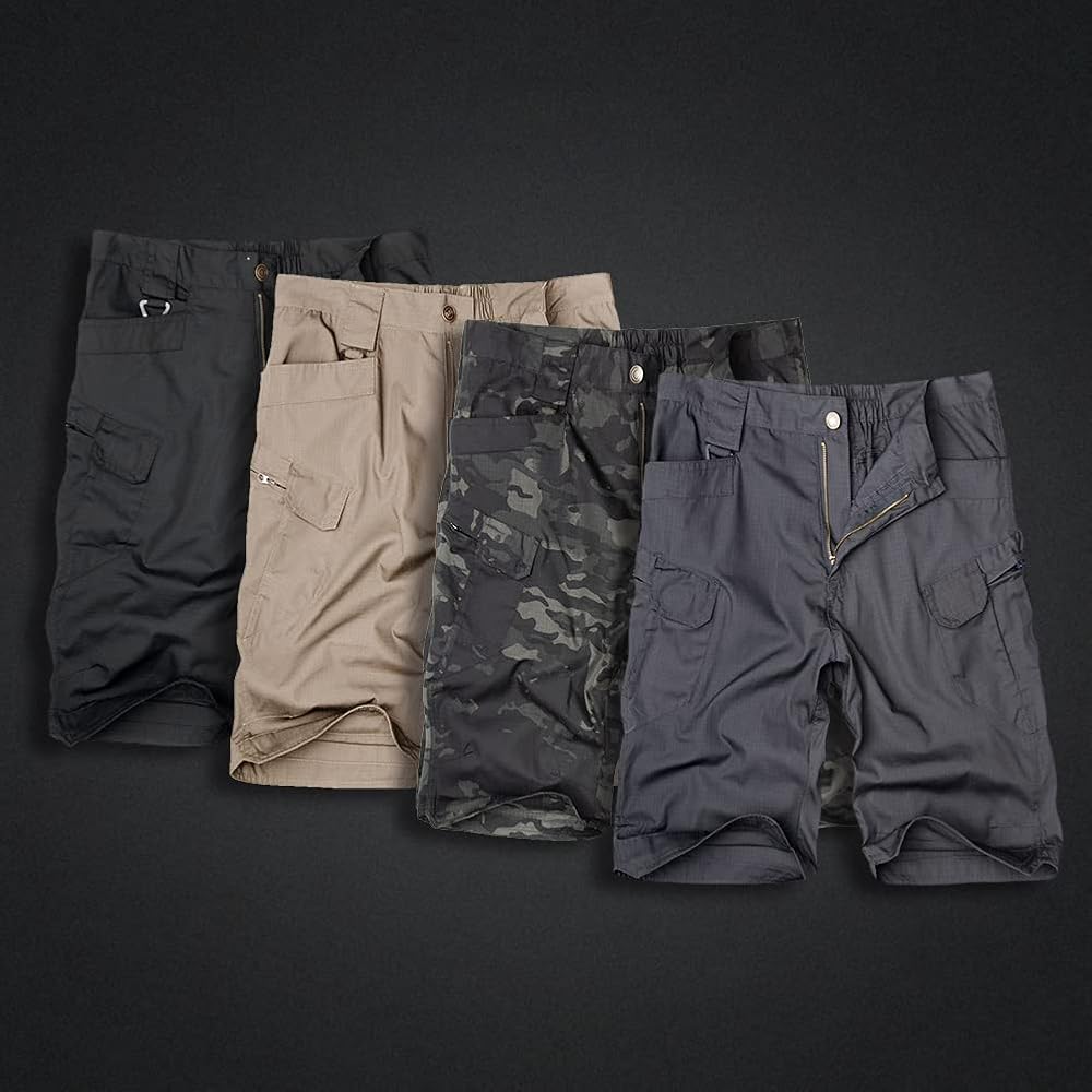 - شورتات كارجو تتميز بنسيج خفيف الوزن/مسامي/مقاوم للتجاعيد/طارد للماء؛