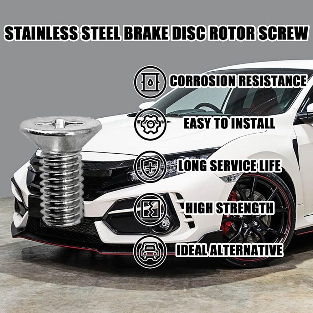 【High Quality Material】These brake disc rotor screws are made of high quality stainless steel material to prevent rust, wear and oxidation.
