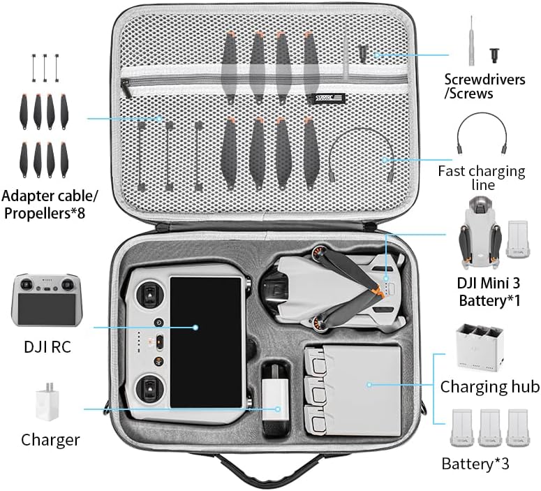 【تصميم مخصص】 تم تصميم حقيبة الحمل هذه خصيصًا لـ DJI Mini 3 / Mini 3 Pro مع DJI RC (وحدة التحكم عن بعد مع الشاشة) وغيرها من الملحقات.