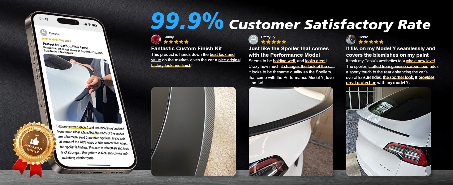 【تركيب بدون ضرر】 لا داعي للقلق بشأن تثبيت هذين الطرازين من الملحقات التي تلحق الضرر بسيارتك الأصلية، جناح جناح TSLDRV وغطاء وحدة التحكم المركزية يستخدمان لاصق 3M خلفي لا يترك أثرًا يمكن أن يبقيهما في مكانهما بقوة ولكن لا يترك أي بقايا عند تقشيرهما. ببساطة قشرها قم بإزالة الغشاء الواقي واضغط عليه على موضع الطراز Y الخاص بك.