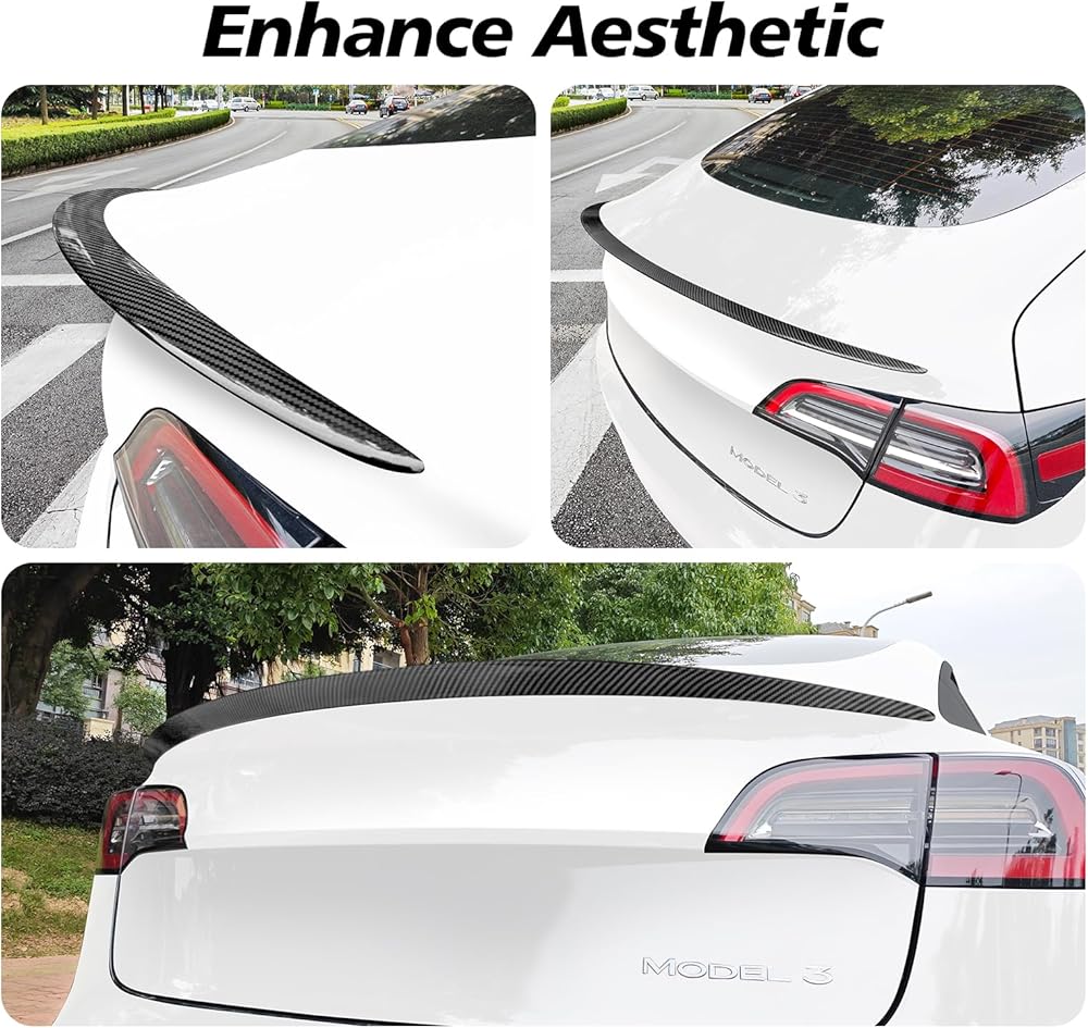【تعزيز المظهر الجمالي】يمكن أن يؤدي تركيب هذين الملحقين من الطراز 3 إلى تعزيز الإحساس بالحركة بشكل فعال، ويعكس الذوق الشخصي. علاوة على ذلك، يمكن أن يمنع غلاف وحدة التحكم المركزية الشيخوخة الداخلية والخدش، كما أن اللمسة النهائية غير اللامعة يمكن أن تكون مضادة للوهج من أجل سلامة القيادة. يمكن أن يقلل جناح ألياف الكربون معامل مقاومة الرياح، والذي يمكن أن يوفر استهلاك الطاقة، ويحسن القدرة على التحمل.