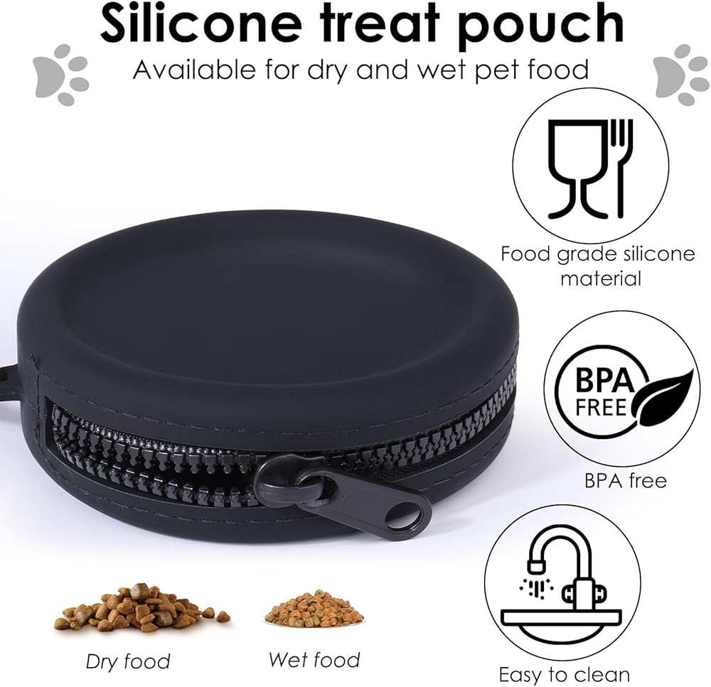 • Dog training treat pouch - Our silicone dog treat pouch is made of high quality food grade silicone material, BPA free, safe, can contact dry and wet pet food directly, dish washer safe, easy to clean. With smooth zipper for easy to open and close, handy wrist strap for easy to carry