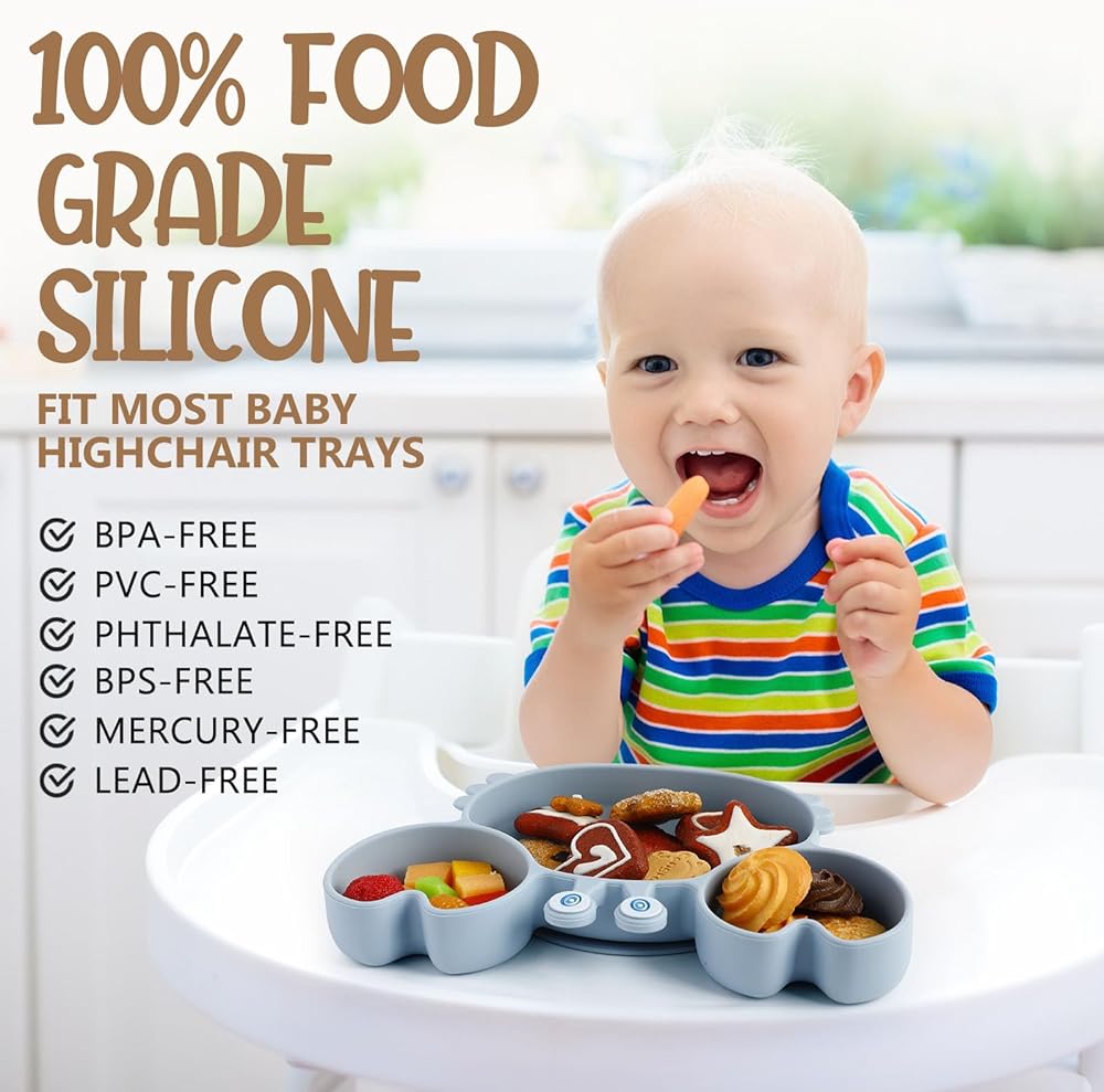 Give your baby more independence during meal times with our silicone plates, which has separate sections. The anti slip design will ensure the plate doesn't end up on the floor, reducing mess.