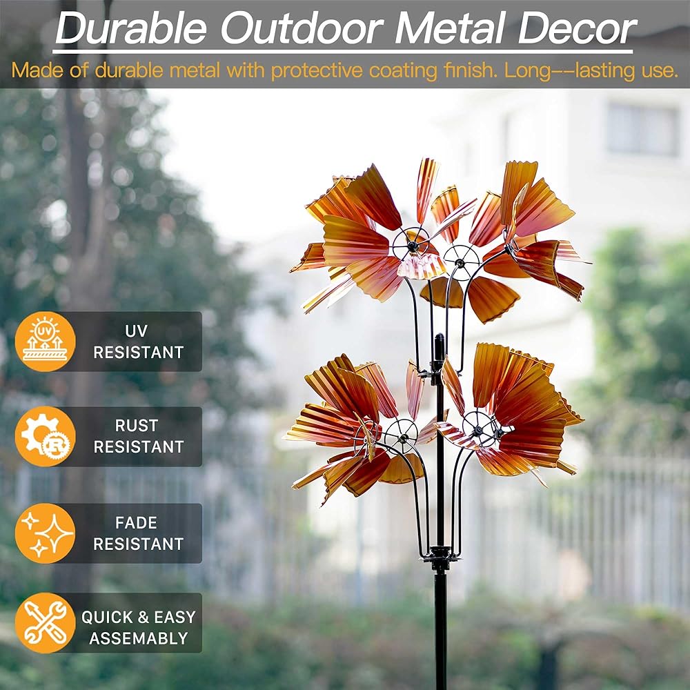 🍂 تعزيز الجمال الطبيعي للحديقة: أضف منظرًا حيويًا جذابًا في حديقتك من خلال منحوتة الرياح المعدنية الحركية والدوار.
