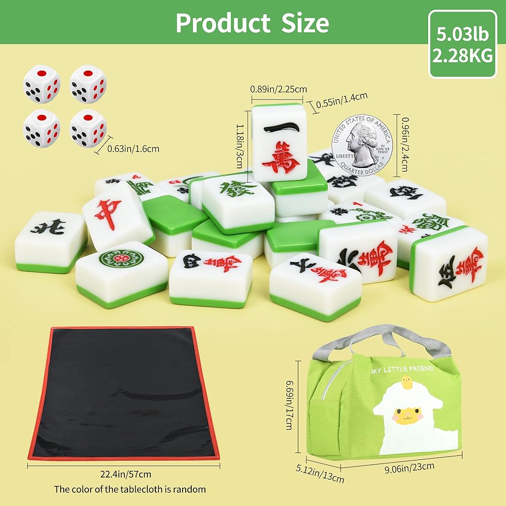 • 【خذ لعبتك في أي مكان】: مع حقيبة يد محمولة للسفر، يمكنك بسهولة اصطحاب مجموعة mahjong الخاصة بك دون الحاجة إلى ترميز؛ تبلغ أبعاد حقيبة اليد 8.2 × 6.7 × 5.9 بوصة (21 × 17 × 15 سم).