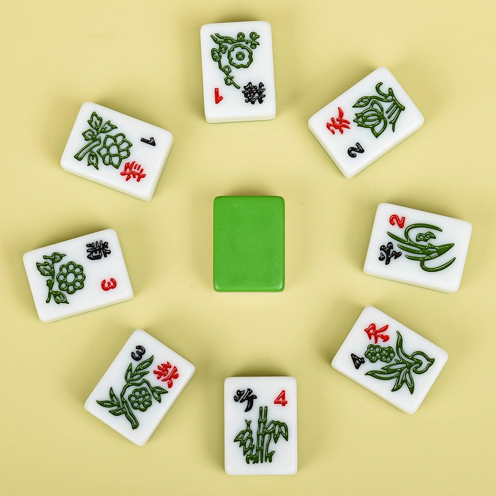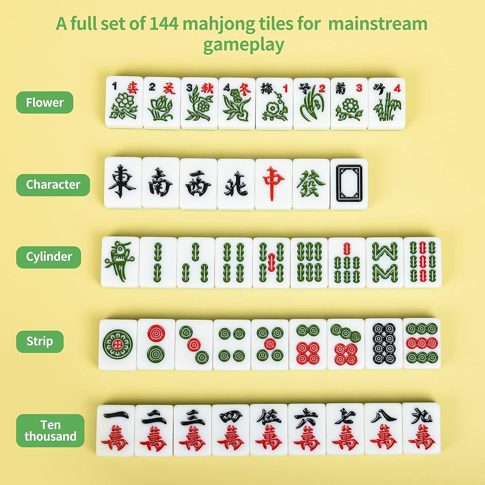 • 【144 بلاط وردي مقاوم للخدش】 تتضمن المجموعة 36 دائرة، 36 خيزران، 36 شخصية، 12 تنين، 16 رياح، 8 زهور ومواسم، 4 نرد؛ مقاس البلاط 1.0 × 0.6 × 0.5 بوصة (2.4 × 1.5 × 1.1 سم).