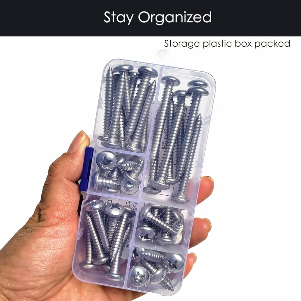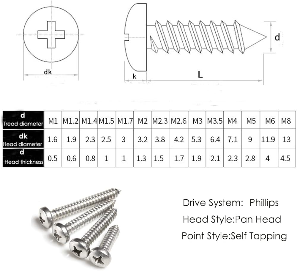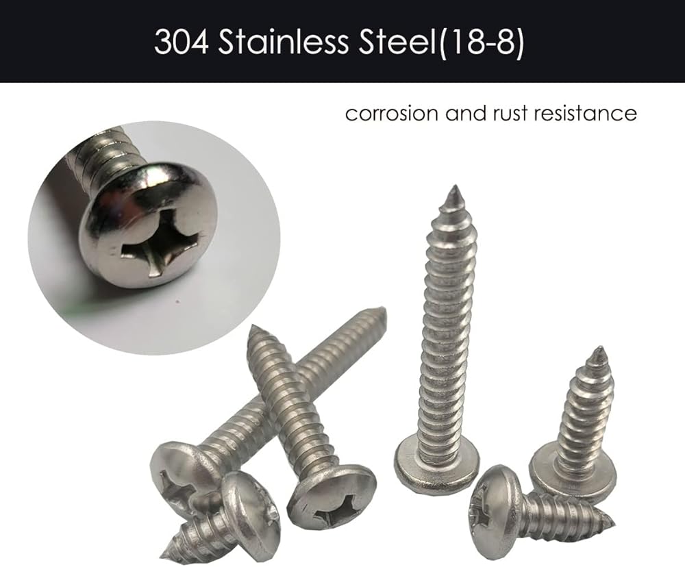 Screws Type: Self Drilling Screws kit ,Round Head Wood Screw, Bright Finish, Full Thread,Phillips Drive.