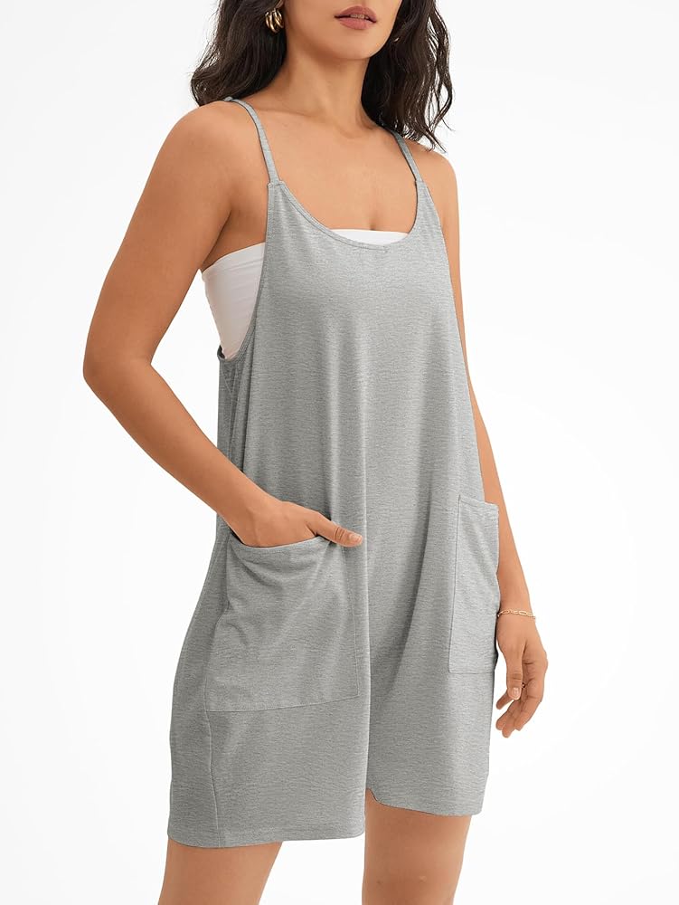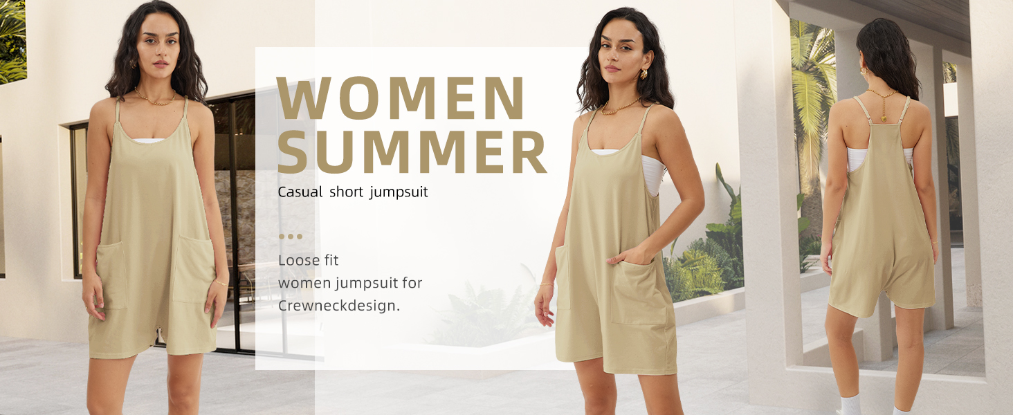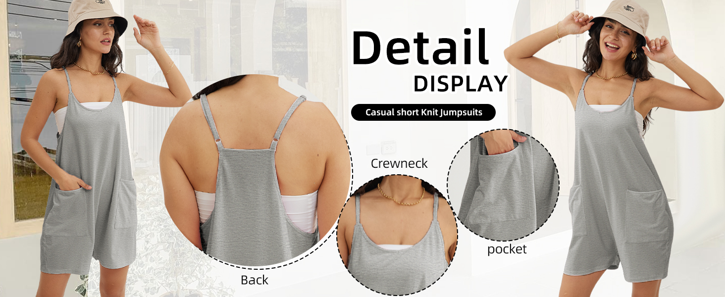 𝗘𝗳𝗳𝗼𝗿𝘁𝗹𝗲𝘀𝘀𝗹𝘆 𝗖𝗵𝗶𝗰: استمتعي بأسلوب عصري مع هذه البدلات القصيرة للسيدات الكاجوال. رقبة على شكل حرف V جذابة، وأشرطة سباغيتي قابلة للتعديل، وتصميم بدون أكمام يناسب نزهات الصيف. مع جيبين جانبيين، تمزج ملابس صيف 2024 هذه بسلاسة بين التطبيق العملي والذوق العصري.
