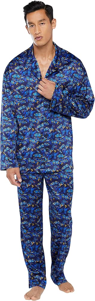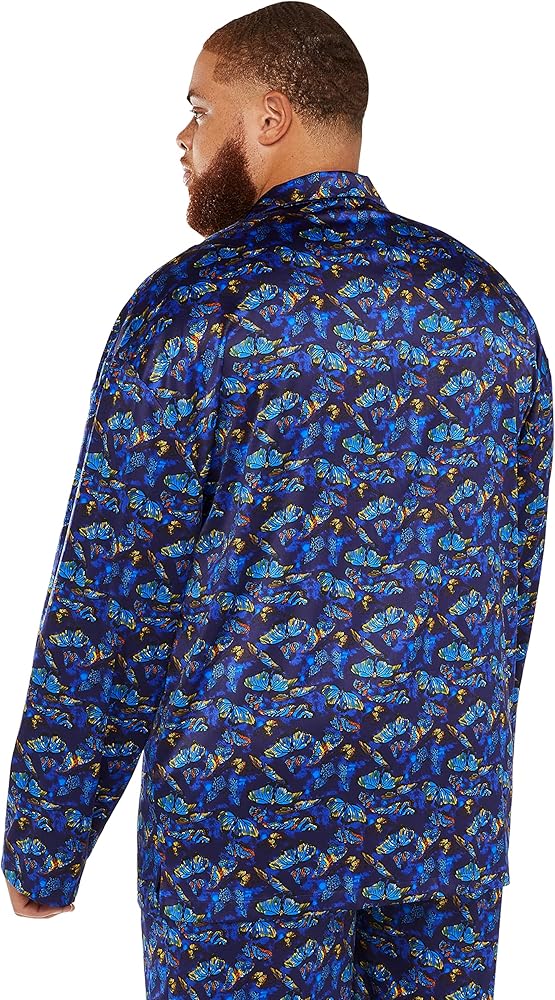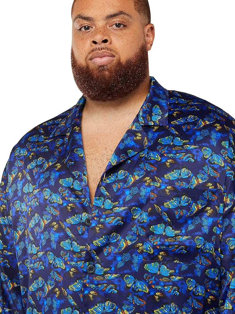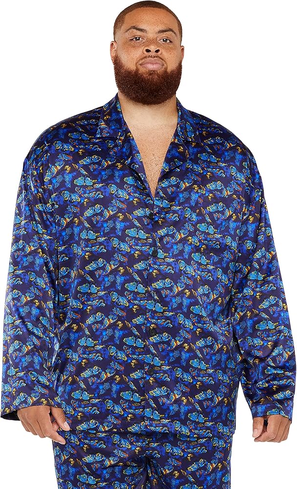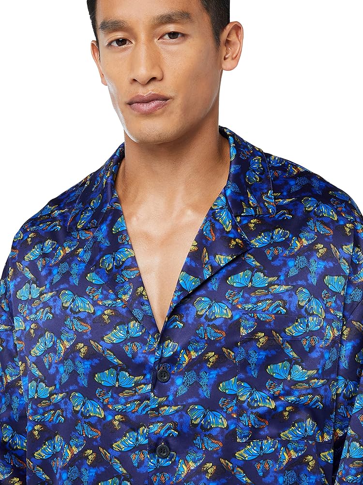 Enter your new element with our Baroque Butterfly Sleep Top, featuring a printed satin body, a notched collar, and front button-up closure.