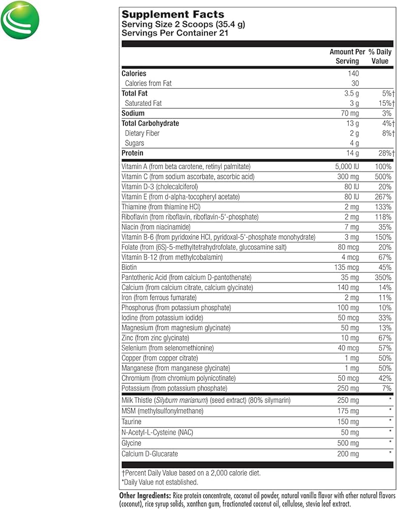 يتكون من كالسيوم-د-جلوكارات للمساعدة في دعم التخلص الطبيعي من السموم والهرمونات من الجسم، وميثيل سلفونيل ميثان لتوفير مركبات الكبريت العضوية اللازمة لمسارات التخلص من سموم الكبد، ومقدمة الجلوتاثيون N-أسيتيل إل-سيستين لنشاط مضاد للأكسدة فائق للمساعدة في حماية الكبد. ضد السموم