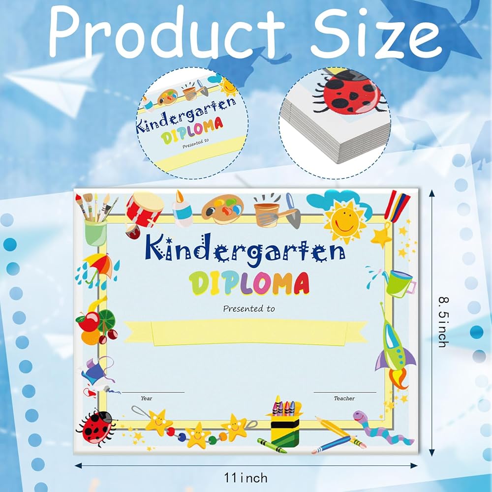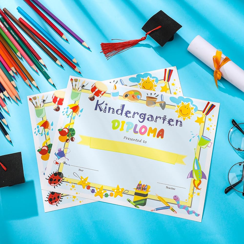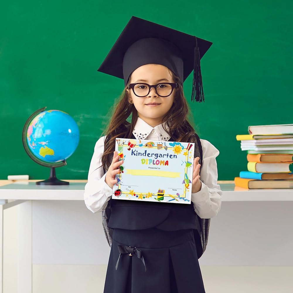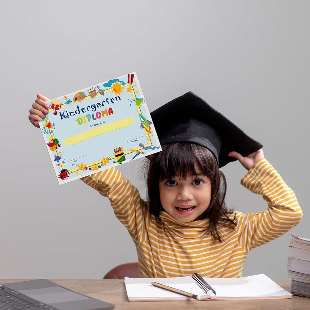 Quality Cardboard: crafted from quality cardboard material, these kindergarten certificates of completion offer a physical embodiment of a major milestone, providing a durable, long lasting testament to your child's educational journey, which can also be safely stored for years without fear of break or deterioration