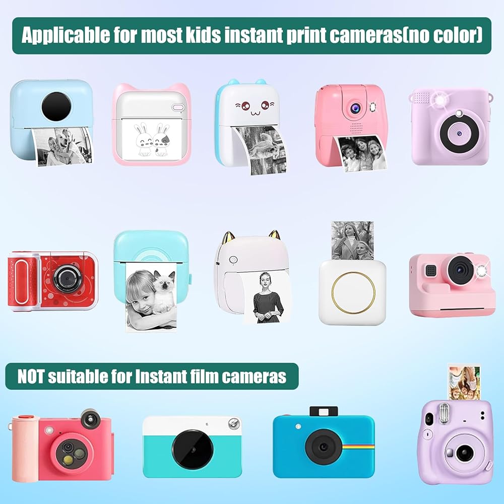 توافق واسع: إن لفات ورق الطباعة القابلة لإعادة التعبئة الخاصة بنا مناسبة لمعظم أنماط كاميرات الطباعة الفورية للأطفال المتوفرة في السوق! وهي لوازم تكميلية رائعة للكاميرا الفورية للأطفال.