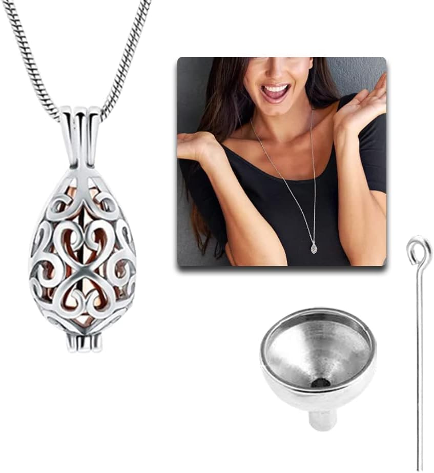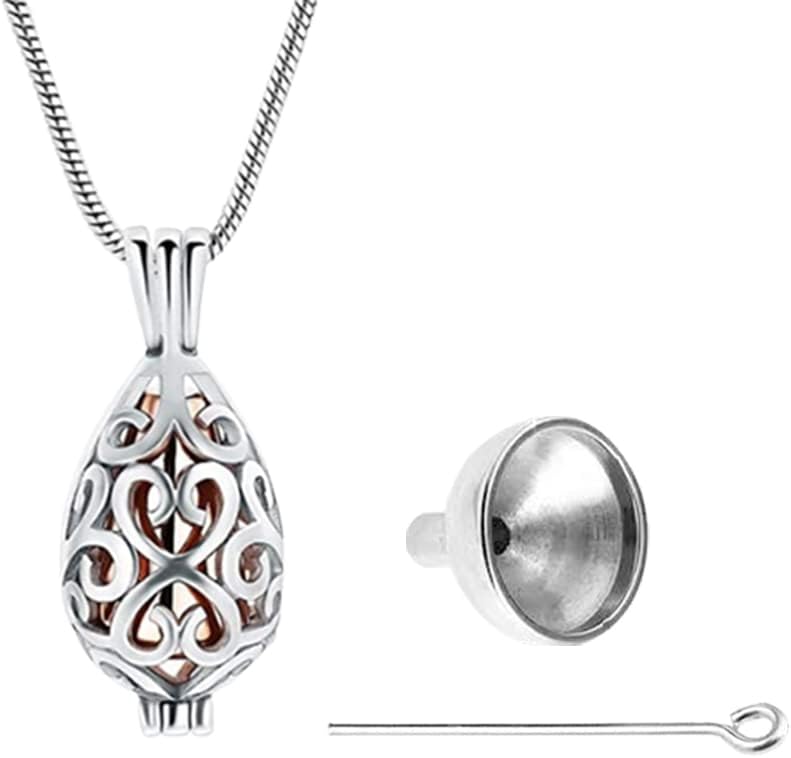 Ashes Keepsake Urn Necklace with Funnel Kit Hollow Heart Cremation Urn Pendant Necklace for Men Women Mum Dad