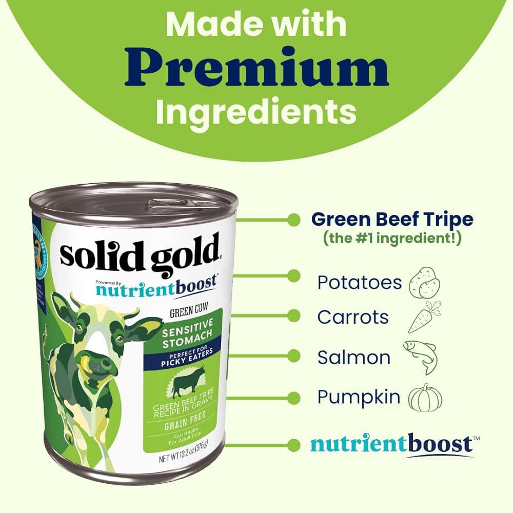 Your dog's favorite recipe is back, and it's better than ever! Our new and improved wet dog green tripe recipe is perfect for dogs with a sensitive stomach and need a boost to their appetite. Green tripe is a natural, unbleached food that is low in phosphorous, making it a great choice for dogs with these dietary needs. It is also a good source of protein, vitamins, and minerals, making it a nutritious and satisfying treat for your furry friend. This product is now made with our premium nutrientboost blend of amino acids and superfoods that support digestion and immune health. pet day sale amazon pet day deals national pet day prime pet day specials pet day 2024 national pet day sales pet food for pet day deals pet day deals cat pet day specials cat dog pet day sales amazon pet day 2024 national pet day deals