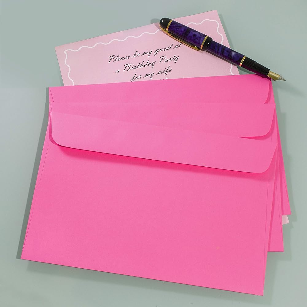 مظروف مقاس 6 × 9 مغلفات دعوة لبطاقات التهنئة فارغة ومفتوحة الجانب - 25 حزمة باللون الوردي