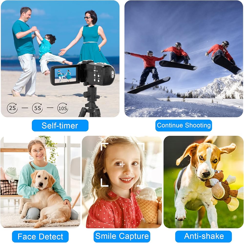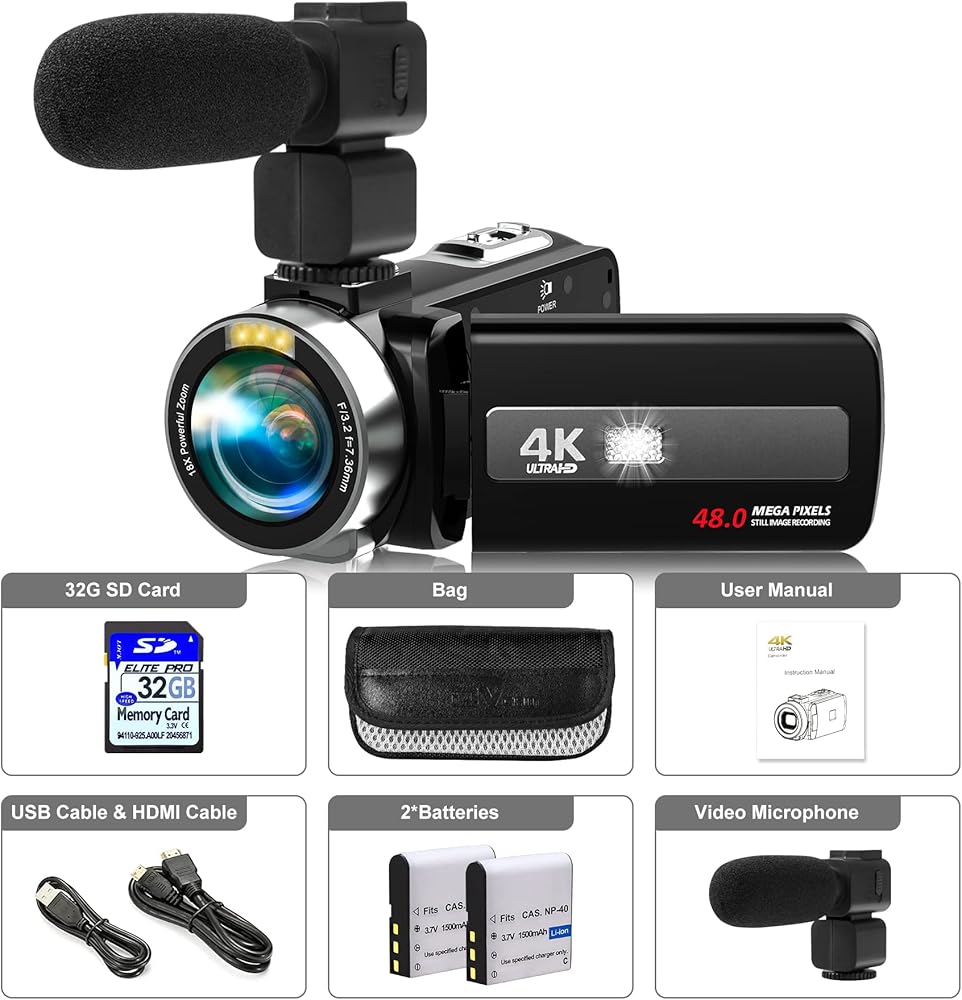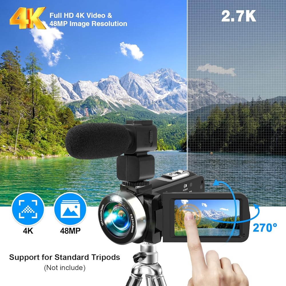 🎥[كاميرا فيديو عالية الدقة 4K] تدعم كاميرات الفيديو Heegomn 4K تصوير فيديو HD 4K وصور بدقة 48 ميجابكسل، وهي مجهزة بشاشة لمس قابلة للطي 3.0 بوصة / 270 درجة، وتكبير رقمي 18X، وبطاريتين عاليتي السعة 1500 مللي أمبير في الساعة. رائعة للأطفال / المبتدئين / الطلاب / كبار السن لتسجيل لحظاتهم الجميلة. (تم تصميم كاميرا الفيديو الرقمية هذه للهواة، وليس للمحترفين)