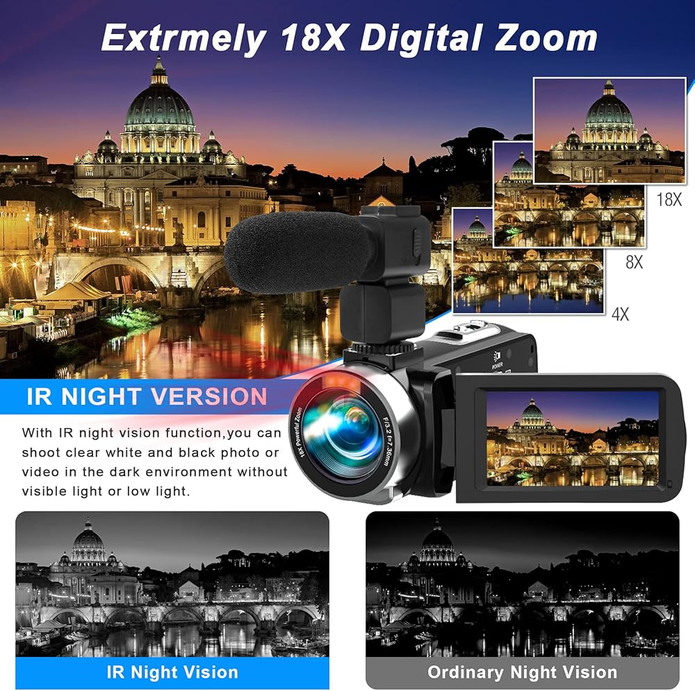 🎥[ميكروفون خارجي] تأتي كاميرا الفيديو هذه مع ميكروفون مدمج وميكروفون خارجي. يمكن للميكروفون الخارجي للترقية التقاط الصوت من خمسة اتجاهات والتقاط الصوت بعيدًا عن 5-8 أمتار. مما أدى إلى تحسين حجم التسجيل وتقليل الضوضاء. الصوت مرتفع جدًا عند التشغيل.