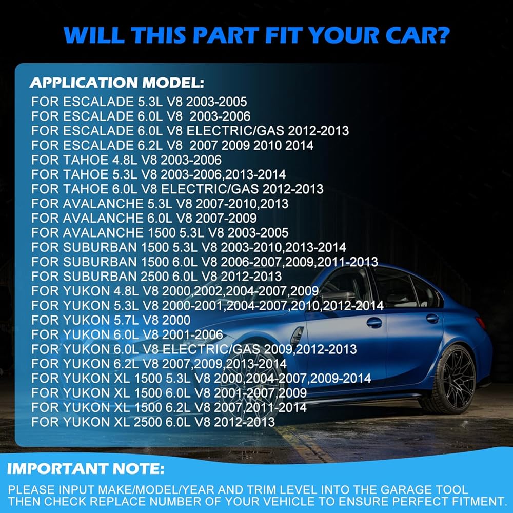 【نماذج مركبات التطبيق】: تناسب ahoe Yukon Escalade 2002-2014. قبل الطلب، يرجى استخدام أداة المرآب للتأكد من توافق دعامة التعليق الهوائي مع الطراز/الطراز/السنة الخاصة بك. تحقق من رقم جزء سيارتك للحصول على ملاءمة مثالية. تجنب المشكلات وتأكد من إجراء عمليات تثبيت سلسة.