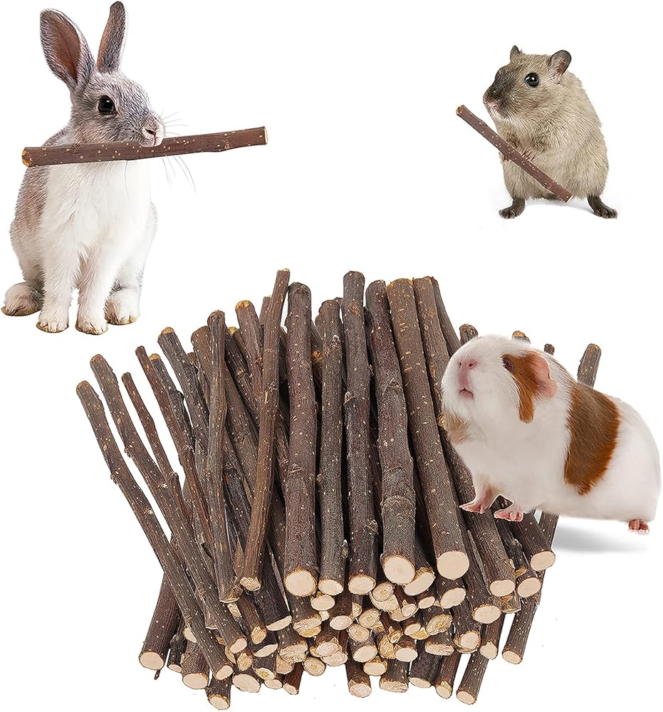 • for Small Animals - Package Weight 11 oz(About 75Pcs). Each Chew Stick Up to 5 Inches Long. Apple sticks provide chew toys and pet treat for small animals, ideal for rabbits, chinchillas, guinea pigs, hamsters, Parrot, hamster, degus, gerbil and other rodent species. You need not worry about furniture and wires being ruined any more.