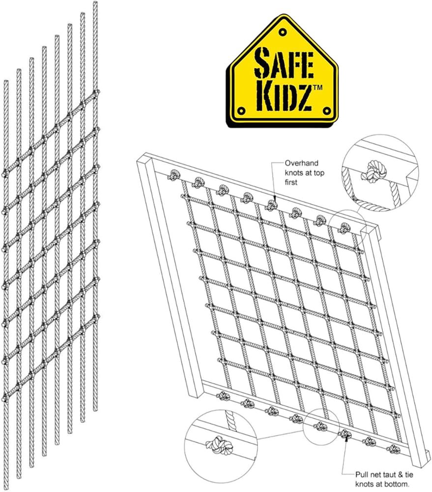 أكثر من ضعف السُمك: انسَ حبال التسلق الواهية المصنوعة من تجديل نحيف وخفيف. تتميز شبكة التسلق للأطفال من سيف كيدز بحبل متين مكون من 3 خيوط بسمك 3/4 بوصة للحصول على أقصى درجات القوة والأمان.